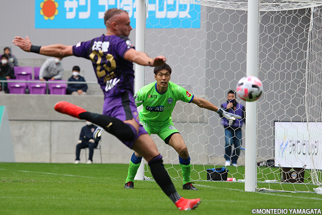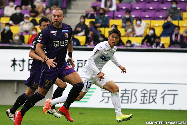 前回の5連戦を4勝1分けと好成績で終え、7位まで浮上したモンテディオ山形。11月最初の試合であり、今季5度目の5連戦の初戦をアウェイの京都で迎えた。ピーター ウタカ選手に4得点を喫した第10節のリベンジを狙ったが、試合を通して京都ペース。前半に1点、後半に2点を奪われ、反撃のゴールも奪えず、0-3の完敗となった。