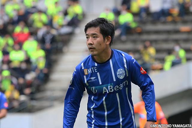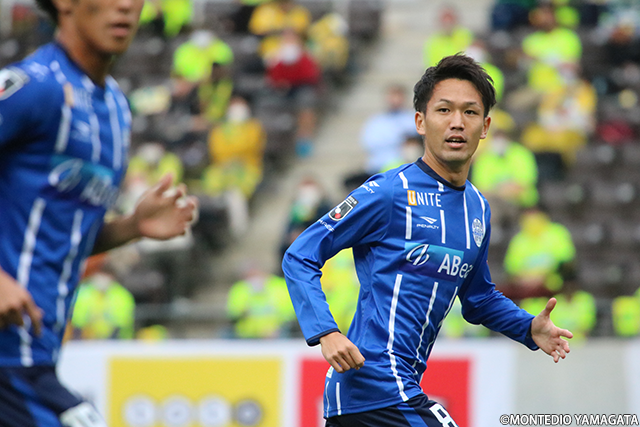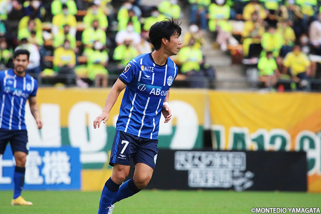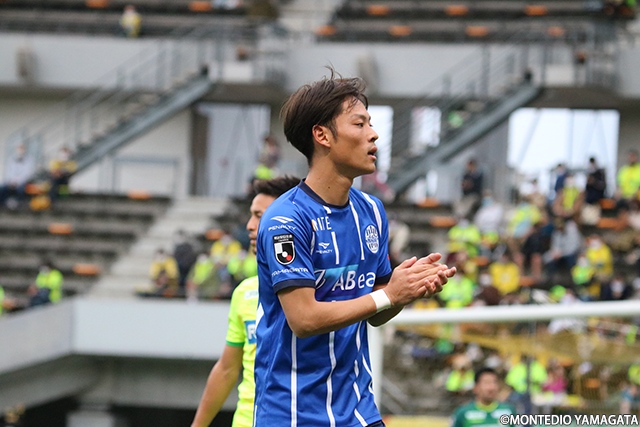 今日グラウンドに来たら、思った以上にサポーターのみなさまの数が多かったので、山形のサポーターにしっかり勝利を届けるために、僕らも勇気づけられましたし、勝利を届ける事ができて、嬉しく思ってます。