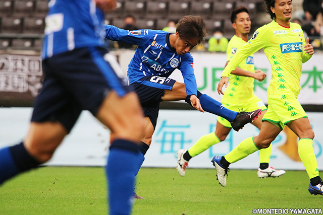 11月に入り2連敗。悪い流れをとめたいモンテディオ山形は、ジェフユナイテッド千葉とアウェイで対戦。31分の先制点を皮切りに、前半2得点、後半3得点と今季最多の5得点をマーク。終盤に1失点を喫したが、2連敗の鬱憤を晴らすような大勝を飾った。