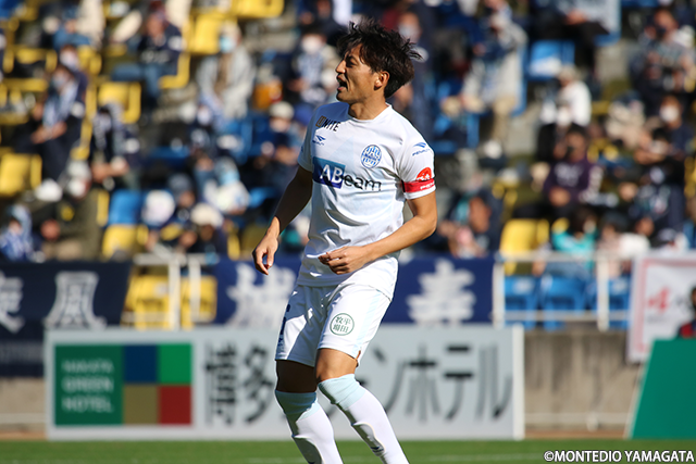 今季最後の5連戦の初戦、モンテディオ山形は2位・アビスパ福岡とアウェイで対戦した。前半、ヴィニシウス アラウージョ選手のゴールで先制したが、後半に追いつかれ、勝利には届かなかった。