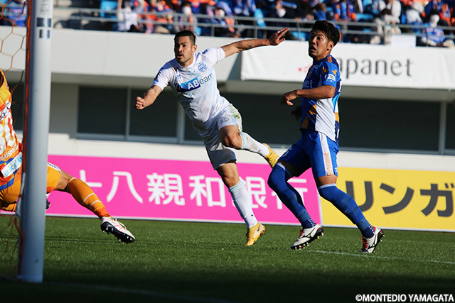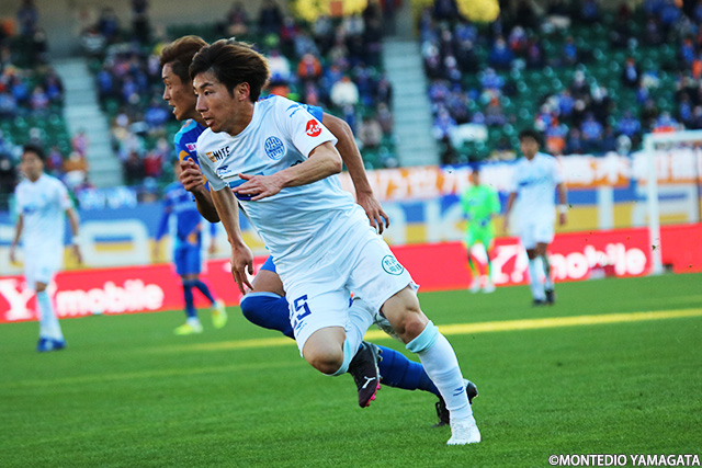 ボールはゴール前近くまで入ったのですがその前の、ここから人が絡んでいくシーンなどが、いい時の山形に比べて少ないという部分もあるので、そのボールをいかにクリーンに入れていく部分もそうですが、それをまた越えていくこともまだまだやらなくてはいけない印象です。
