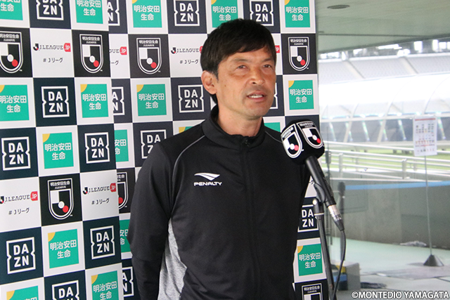 町田戦での反省もあったのですが、選手の間の距離が伸びて、ロングボールというか裏へのボールが結構多かったです。それは僕たちが目指しているサッカーではないし、ただ開幕戦で緊張感やいろんな思いがあったのでそれはしょうがないと思って、今週はその反省を持って僕たちらしいパスをつないで全員が動いて、出して動くという連動するサッカー、今日の試合は山形らしいサッカーは出来たんじゃないかと思います。