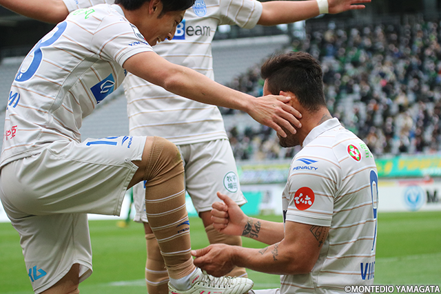 開幕戦はシュート3本、オウンゴールの1点のみで引き分けたモンテディオ山形。キャンプを終えて山形に戻り、仕切り直して迎えた第2節・東京ヴェルティ戦はシュート22本と攻撃が機能。ヴィニシウス アラウージョ選手の2得点に終わったが、相手のシュートを4本に抑え、2-0で今季初勝利を挙げた。
