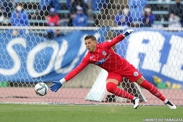 モンテディオは高い位置で奪い返してからの攻撃で、中村選手からフリーの中原選手にボールが渡ったが、右足のシュートは弱い弾道となり、相手キーパーに難なくキャッチされた。