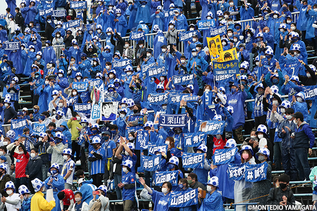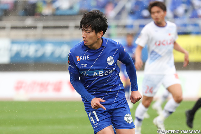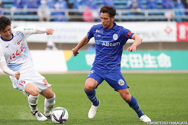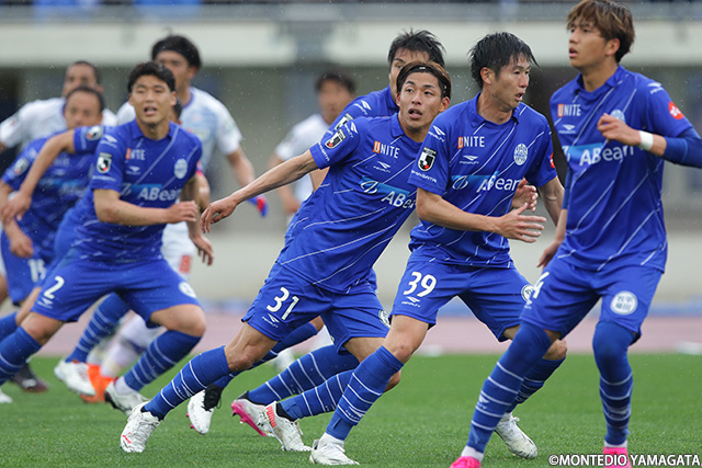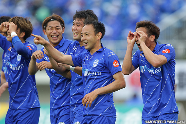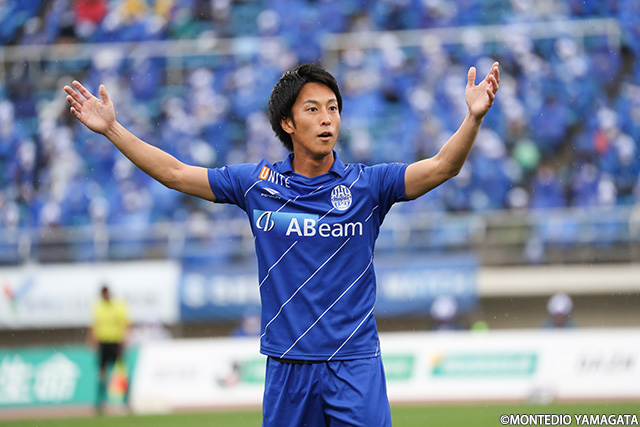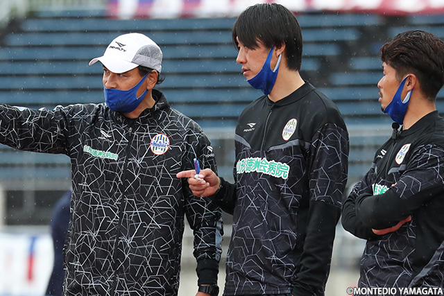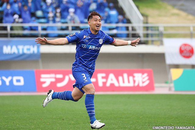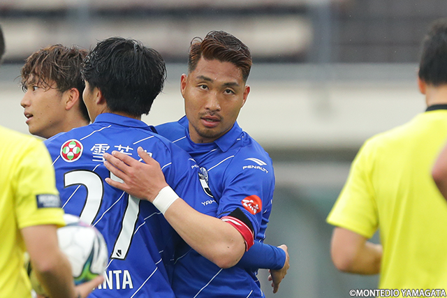 佐藤尽監督に代わって2連勝し、迎えたホーム・ヴァンフォーレ甲府戦。モンテディオ山形は前半に先制したものの、後半に逆転を許し押し込まれたが、試合終了間際にCKから栗山直樹選手の同点ゴールが生まれ、2-2と土壇場で引き分けた。