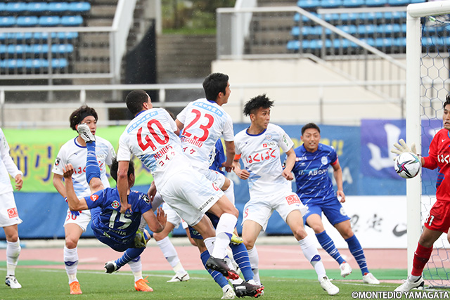 モンテディオは62分にはCKを連続して獲得したり、その後は中原選手が何度かクロスを中央へ送ったりとチャンスを模索。68分には山田拓巳選手のパスカットからカウンターを仕掛け、相手ブロックを外して山田康太選手がシュートを放ったが、ここはサイドネットだった。
