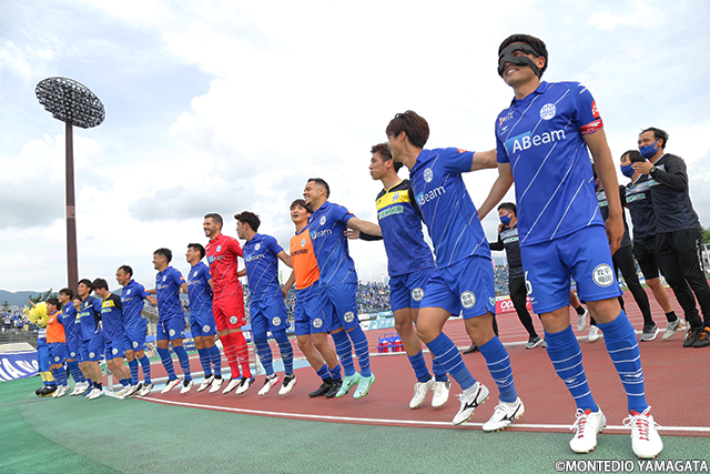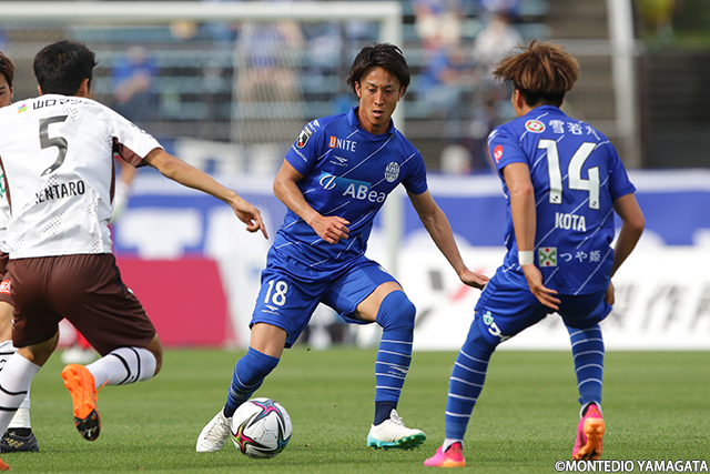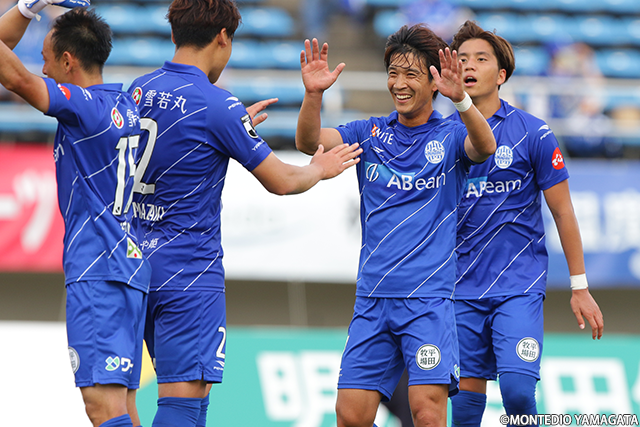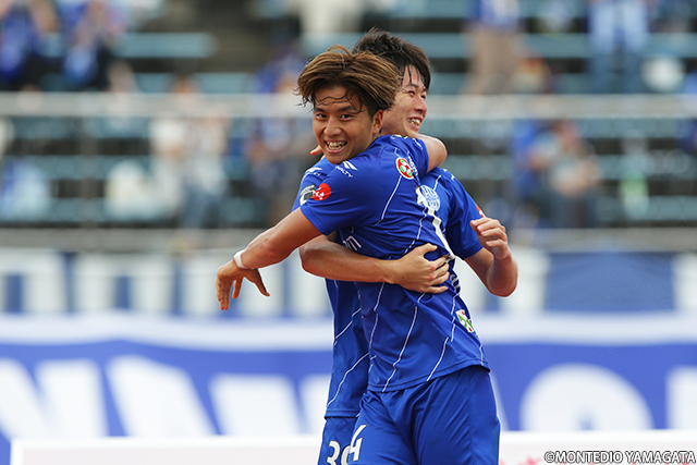 週中に天皇杯で敗退し、リーグ戦に集中することになったモンテディオ山形は、中3日でレノファ山口とホームで対戦。全体に主導権を握って試合を進めるなか、前半に林誠道選手、後半に加藤大樹選手がゴールを決め、2-0で快勝した。