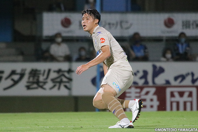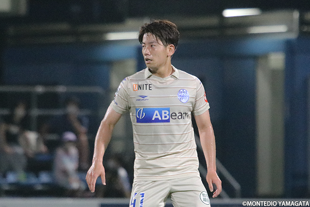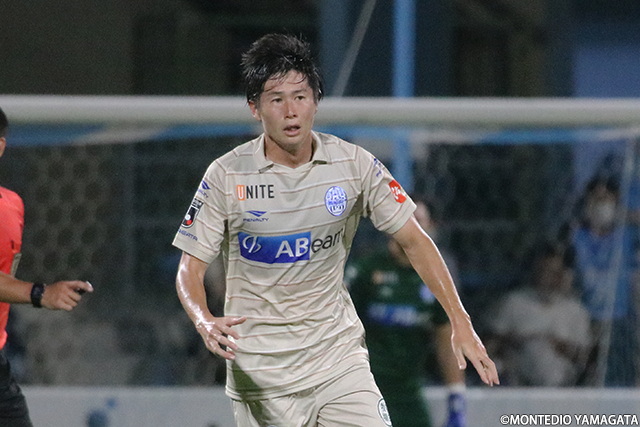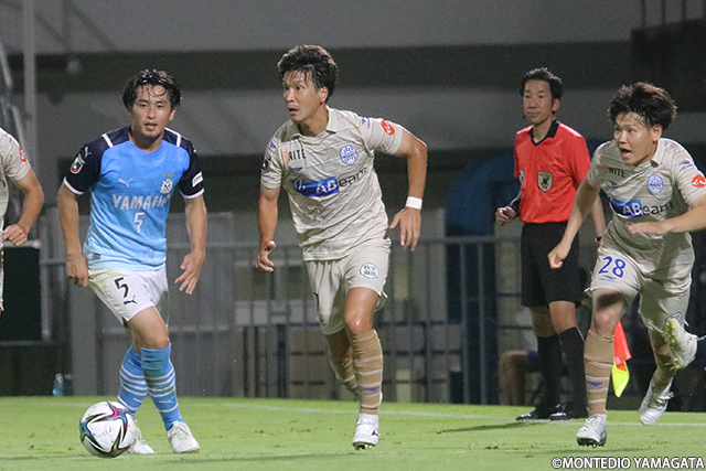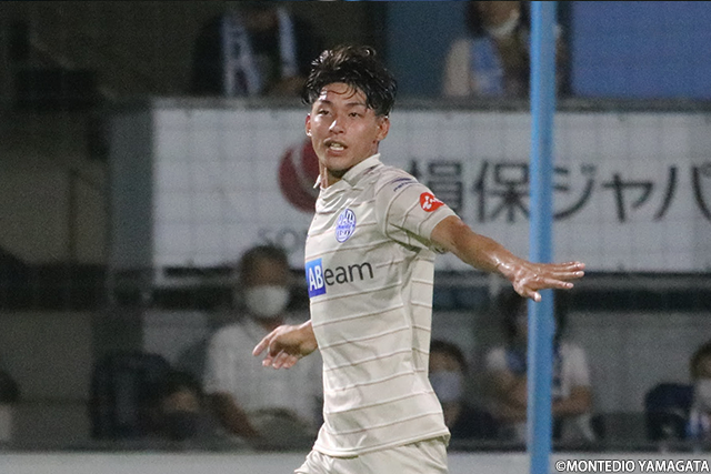 前節と同じメンバーで臨んだモンテディオは、立ち上がりからフルパワーで林選手、山田康太選手の二人がチェイシングをかけボールを奪うと、バックラインを右に移動したボールは半田陸選手から縦へ。背後の大きなスペースに走り込んだ中原選手がグラウンターで折り返すと、林選手がワンタッチで蹴り込み、ゴールネットを揺らした。