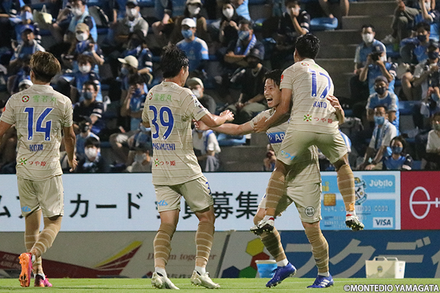 押し込まれたなか、磐田のクロスが左右から蹴り込まれ、CKも数多く与えたが、ボールの出どころにアプローチしたり、中で競り合ったりと最後までボールに出続けた。目安6分のアディショナルタイムを1分以上オーバーしたところでようやく試合終了のホイッスル。2-1でモンテディオが勝利し、首位・磐田に13試合ぶりの黒星をつけた。