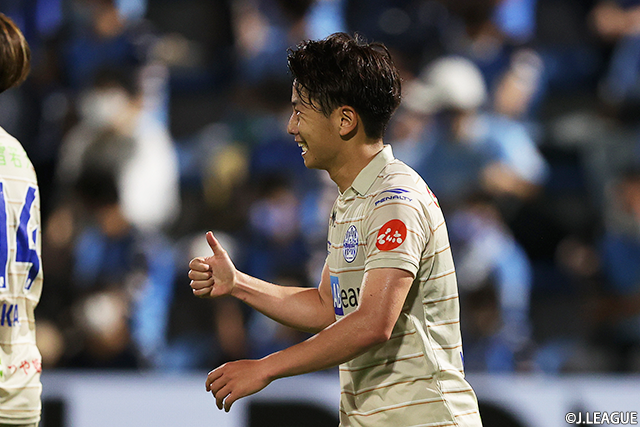 (Q.1点目、2点目とも中原選手が絡んだ良い形のゴールでしたが、振り返って)チームとして背後の意識というのは狙っている部分で、(半田)陸から立ち上がりにすぐ良いボールが来て、(林)誠道が上手く相手を外してくれたので、しっかりそこにパスを送れることができたので、それで先制点をうまく取れたのかなと思います。