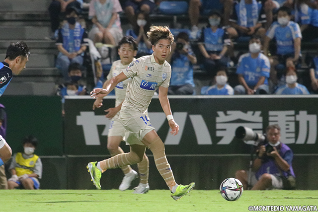 2点差をつけられた磐田はさらに攻撃を強めてきたが、モンテディオは自陣に押し込まれながらもボールにはしっかりアタック。外側から上がってくるクロスも跳ね返し、セカンドボールも中原選手が落ち着いてフリーの藤田息吹選手に付けるなど、2-0のまま前半を終了した。