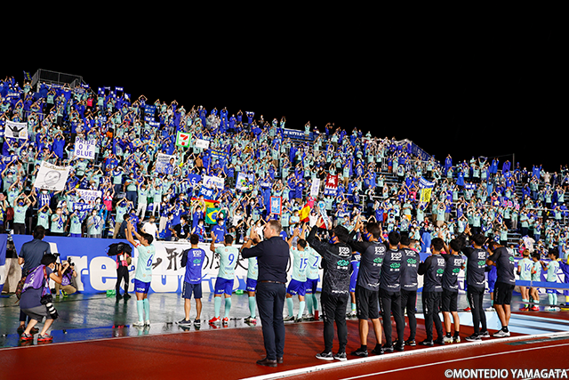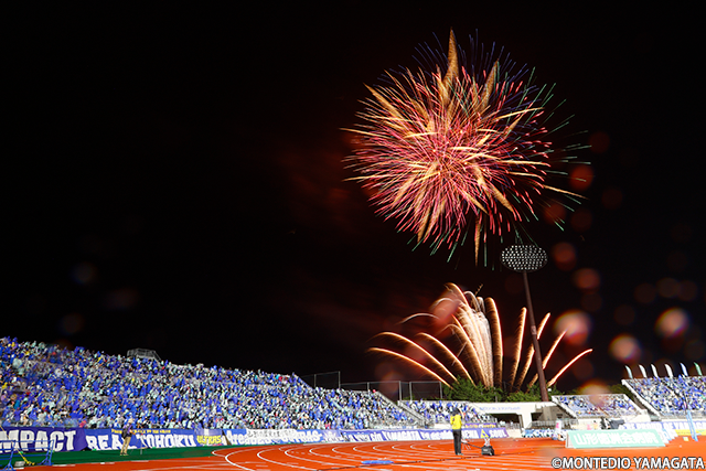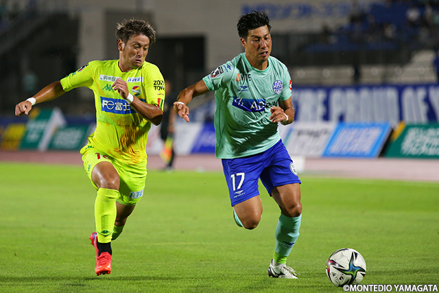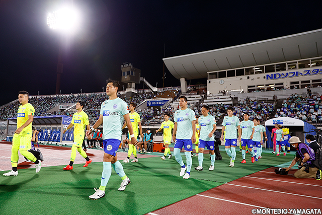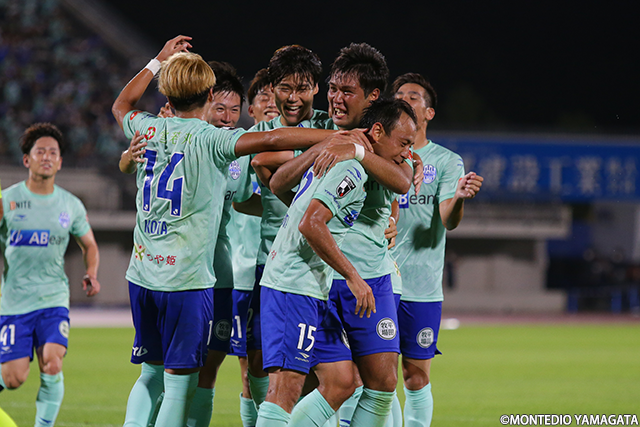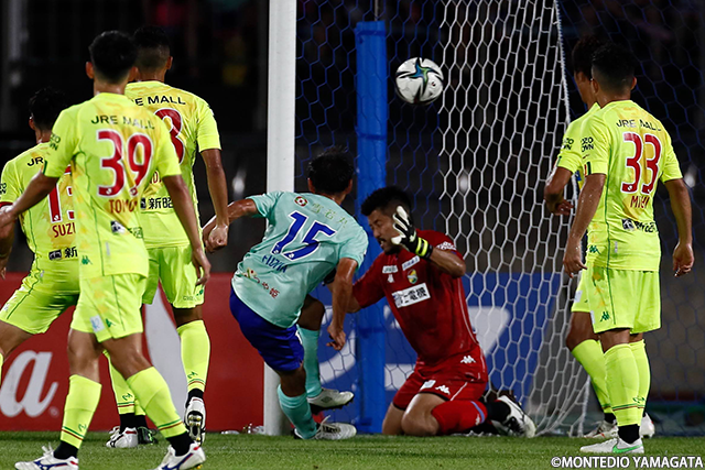 3週間の中断期間をはさみリーグ戦に戻ったモンテディオ山形は、ホームでジェフユナイテッド千葉と対戦。前半1-1のあと、後半に2点を追加して突き放し、3-1で勝利した。8,340人を集めたナツユニ初戦を制し、クラブ新記録の7連勝を達成した。