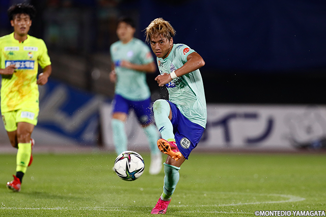 86分、左サイドの1対1から樺山選手が仕掛けクロスを送ると、跳ね返りを収めた南選手がミドルシュートを放ったが、ここは惜しくもサイドネット。樺山選手はさらに積極的に仕掛け、アディショナルタイムには山田康太選手からのパスを受け取り、中央でコースをこじ開けながらミドルシュート。これも左にそれたが、山形デビュー戦で存在感を示した。