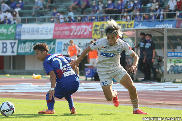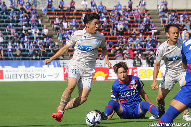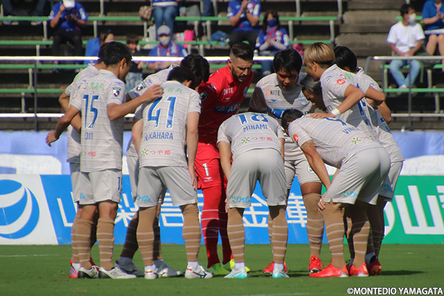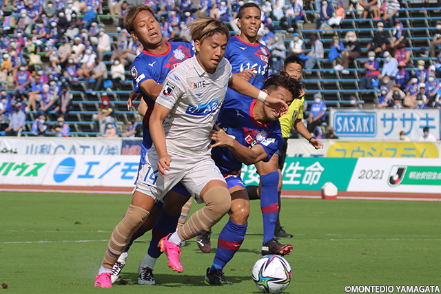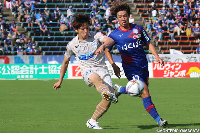 ここから最終節までデーゲームが続く10月最初の試合は、勝点2差でひとつ順位が上の6位・ヴァンフォーレ甲府戦。モンテディオ山形は前半から攻撃を仕掛けるものの決定機を決めきれず、後半に入り2失点。0-2で敗れ、昇格に向けた状況はさらに厳しくなった。