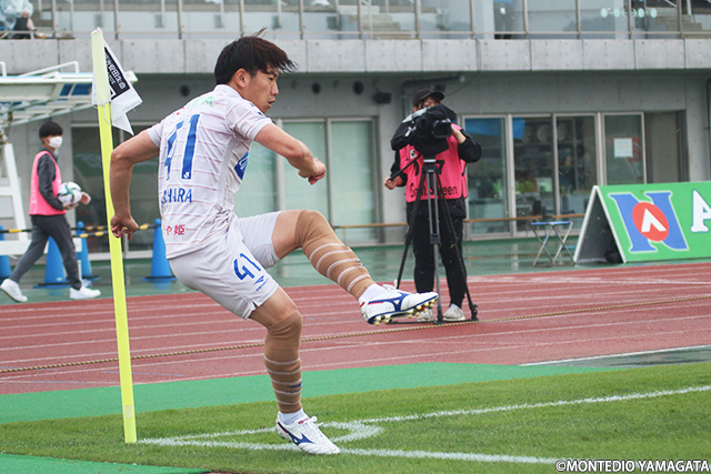 後半、左サイドを2枚交代した相模原だったが、ゲームをコントロールしたのはモンテディオ。相手陣内でプレーし、早い守備の切り替えですぐに蹴らせてボールを回収したり、自陣にボールを入れさせないタイトな守備で押し込んだ。