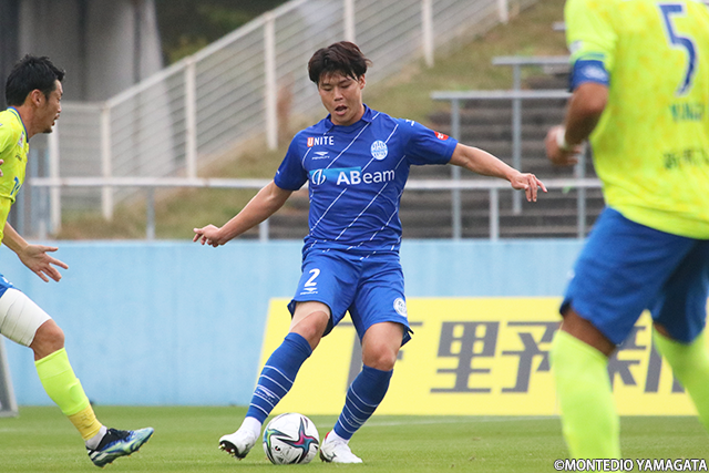 しかし後半立ち上がり、モンテディオがいきなりスコアを動かした。ビルドアップから山田拓巳選手が縦にフィードを送ると山田康太選手が収め、相手のプレッシャーをかわしながら中央付近へ運ぶと、藤田選手とスイッチ。藤田選手が2タッチ目で打ったシュートがゴール右隅に決まった。