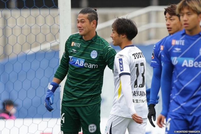 この前半終了間際、GK藤嶋栄介選手がボールを蹴り出した際に足にアクシデントがあり、後半開始からビクトル選手が出場した。