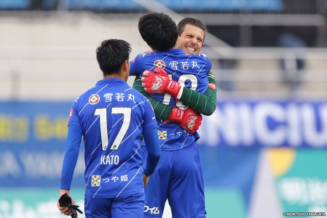 ホームで迎えた今季最後の試合は、ヴィニシウス アラウージョ選手の4ゴールなどで5-1と大勝。モンテディオ山形はたくさんのゴールと6試合ぶりの勝利でシーズンを締めくくった。