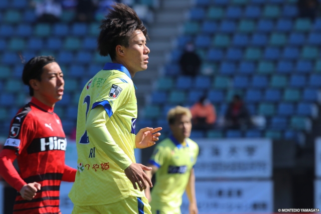 こうやって現地に来て、コロナ禍という中で、厳しい状態でも現地に来てくださったりとか、山形ではスタジアムの雪かきを手伝ってくださり、サポーター含めて山形一丸で戦っているというのを実感しているので、その中で、次も勝ちをプレゼントできるように頑張りたいと思います。ありがとうございます。