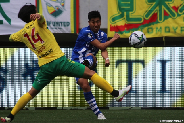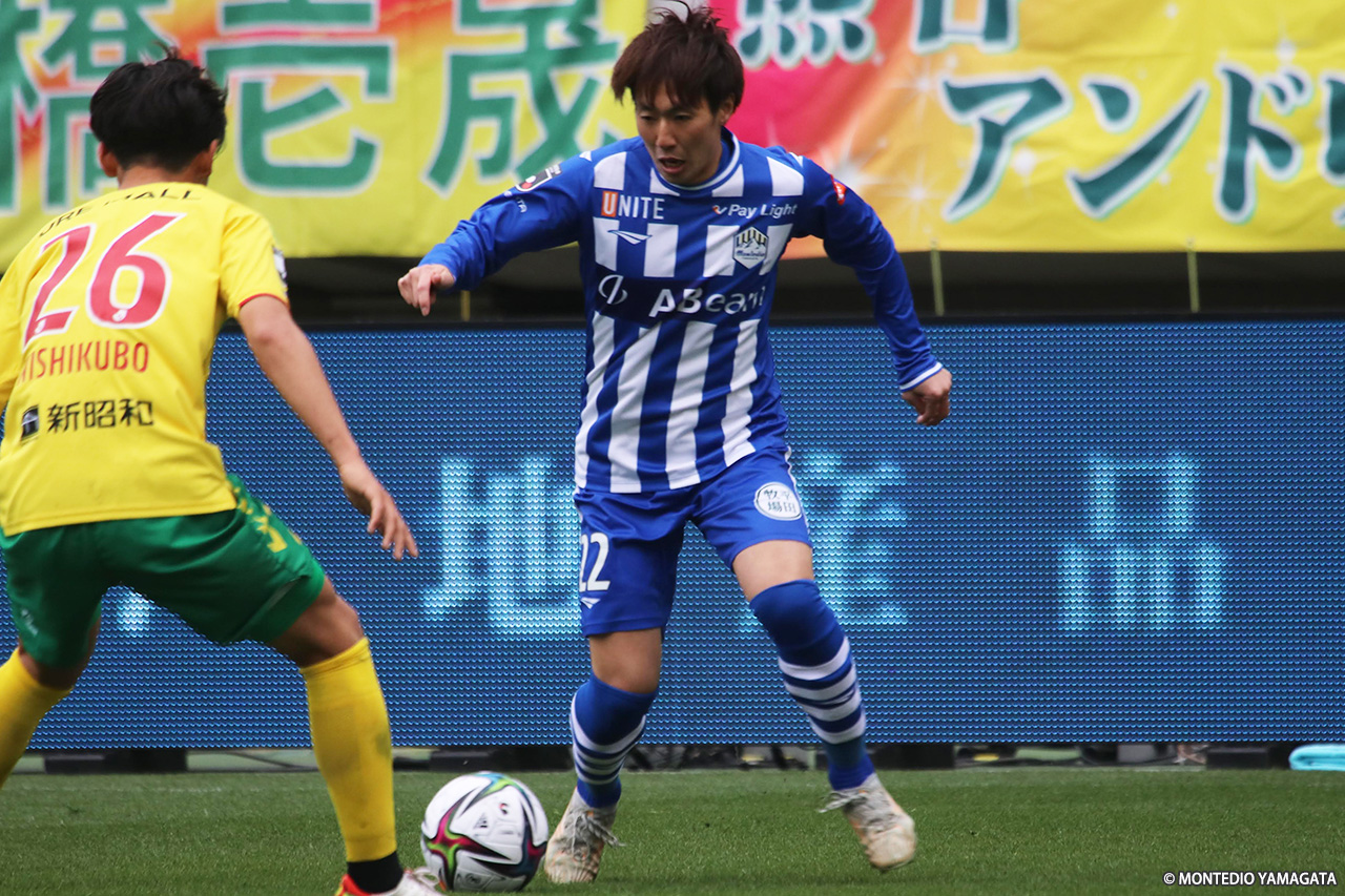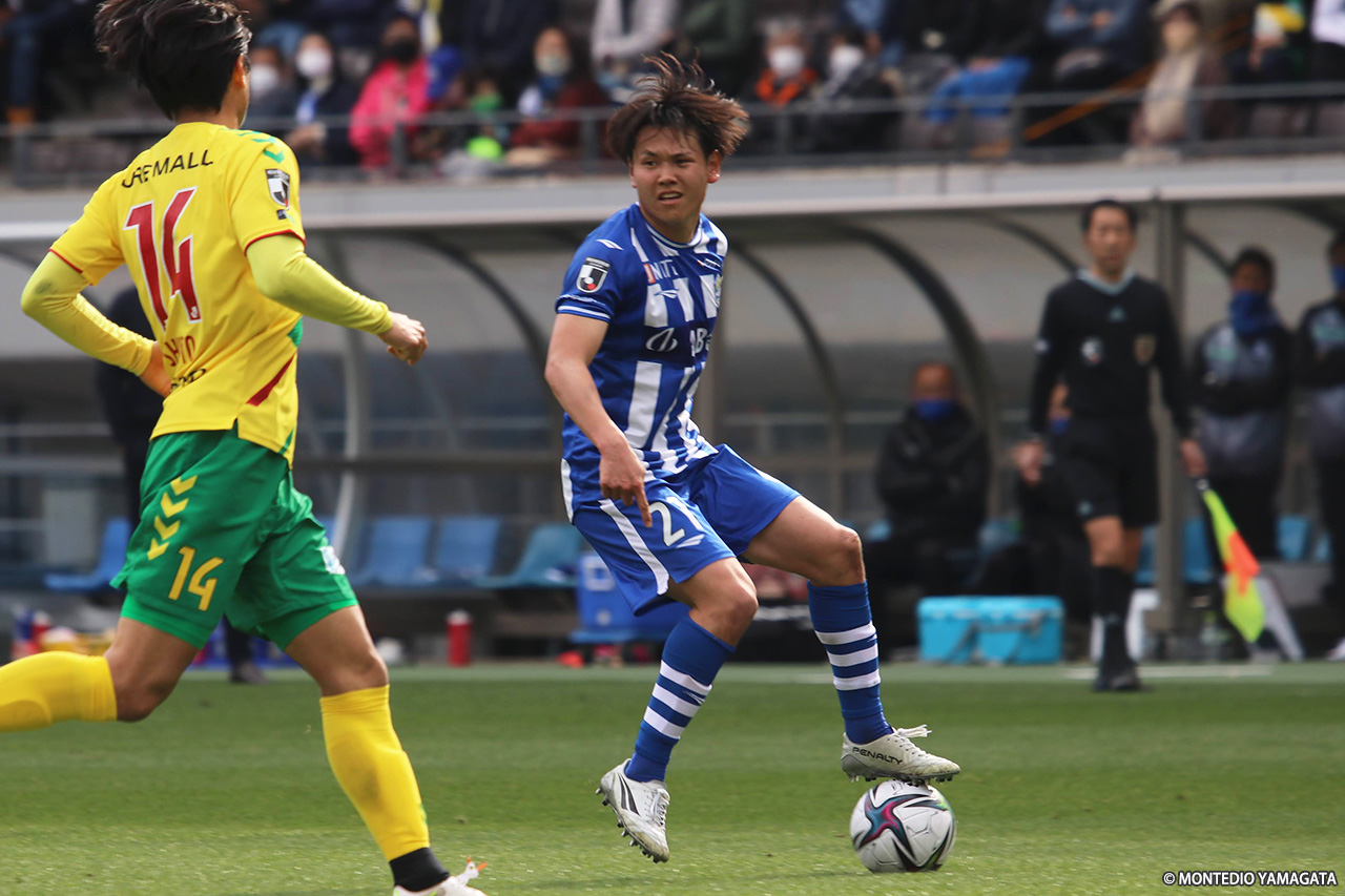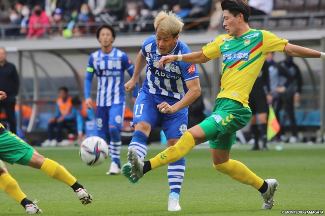 前節で今季初勝利を挙げ、山形に戻っての練習もスタートさせたモンテディオ山形は、アウェイ4連戦の3試合目でジェフユナイテッド市原・千葉と対戦。90分を通してボールを支配し続けたが、ブロックを敷く守備的な千葉を最後まで崩し切ることができず、青白縦縞のファーストユニフォームで戦った初戦はスコアレスドローに終わった。