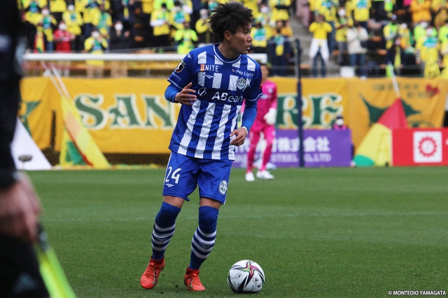 ケアされた南選手をなかなか使えないモンテディオは、両サイドからボールを前に運ぶシーンが多かった。3分には左サイドの加藤太樹選手から中央の藤田息吹選手を経由し、右サイドから横山塁選手がゴール前に入り込んだが、シュートはGKにキャッチされた。その後、サウダーニャ選手からのクロスに櫻川選手が頭に当てクロスバーに当たるシーンもあった。