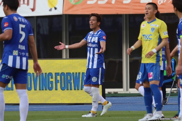 この劇的な決勝ゴールから間もなく、試合終了の笛。2-1で勝利したモンテディオは4連勝。通算戦績を6勝4分4敗とし、勝点を22まで伸ばした。順位は5位と変わらなかったが、自動昇格圏内まで勝点4差まで迫った。