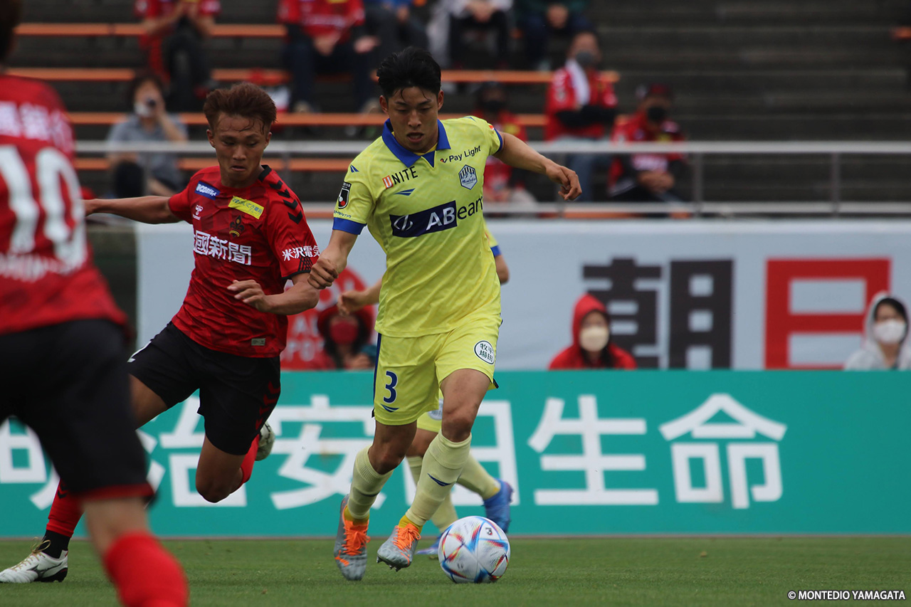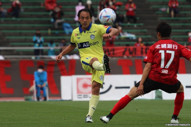 ゴールデンウィークの5連戦を終えたあと、第16節・岩手戦が中止。2週間ぶりのリーグ戦となった今節はアウェイで金沢と対戦した。前半早々に失点を許すも、後半にかけて盛り返し、藤田息吹のゴールで同点としたが、逆転とはならず勝点1を獲得するにとどまった。