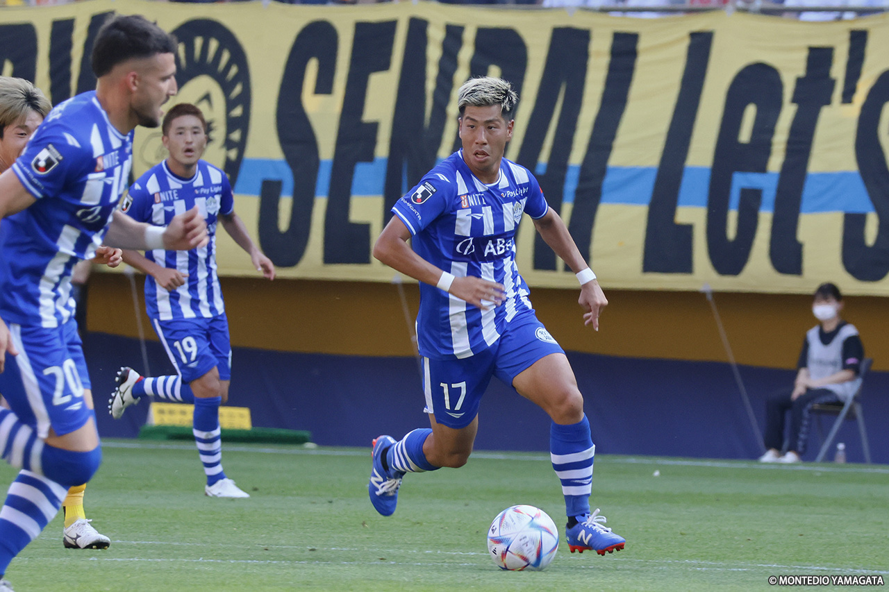 天皇杯を戦ったホームの仙台が中2日なのに対して、モンテディオは中6日と日程的には余裕があったが、負傷離脱者が多く、前節から の先発変更は2人にとどまったが、チアゴ アウベス選手がセンターフォワード、川井歩選手が右サイドハーフなど、今シーズン初めてのトライとなるポジションでプレーした。