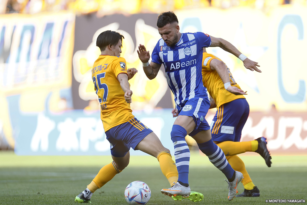 今シーズン2度目のみちのくダービーは、直前の気温31.1度の中で行われた。モンテディオは前半に先制したものの、仙台の反撃を耐えきれずに終盤に失点し、1-1のドローで終わった。