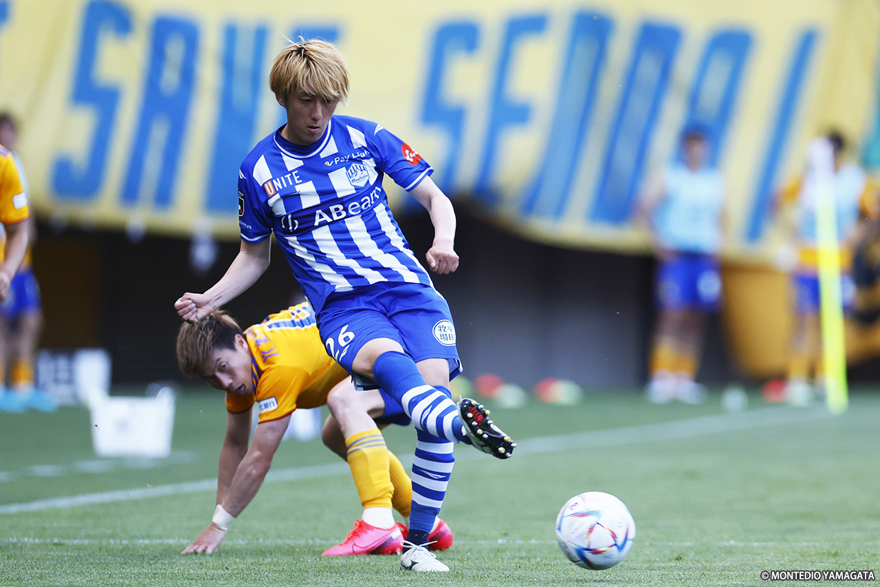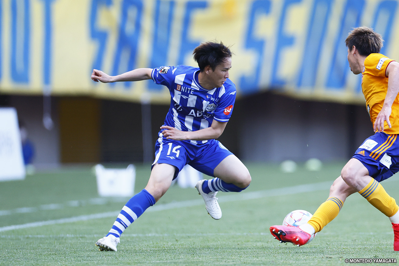 モンテディオは交代なし、仙台はボランチを1枚入れ替えてスタートした後半は、仙台がより前からプレッシャーを狙ってきたが、モンテディオも自陣でのビルドアップで対抗した。56分には相手の左クロスから真瀬拓海選手がシュート。後藤選手が弾いたセカンドを拾った仙台がさらに左クロスを上げてきたが、富樫敬真選手のヘディングシュートは枠外だった。