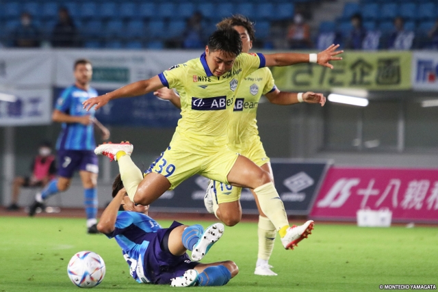 先発は前節から2人変更。山田康太選手が3試合ぶり、藤田息吹選手が7試合ぶりの先発出場となった。また、前節で山形デビューを果たした藤原悠汰選手が2試合連続で先発入りを果たした。
