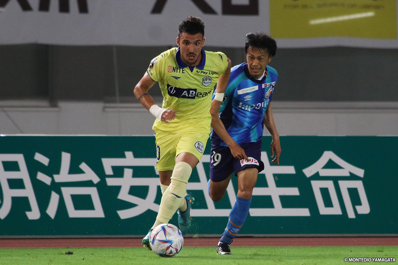 前節のホームゲームで敗れ、5戦未勝利のモンテディオ山形は、中3日でアウェイのV・ファーレン長崎戦に臨み、前半に先制しながらも追いつかれ、1-1のドローで試合終了を迎えた。