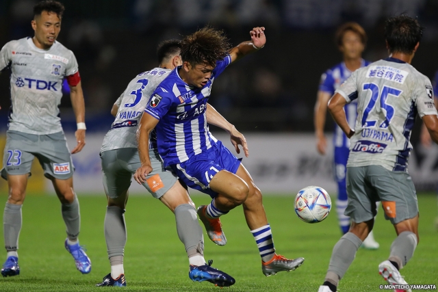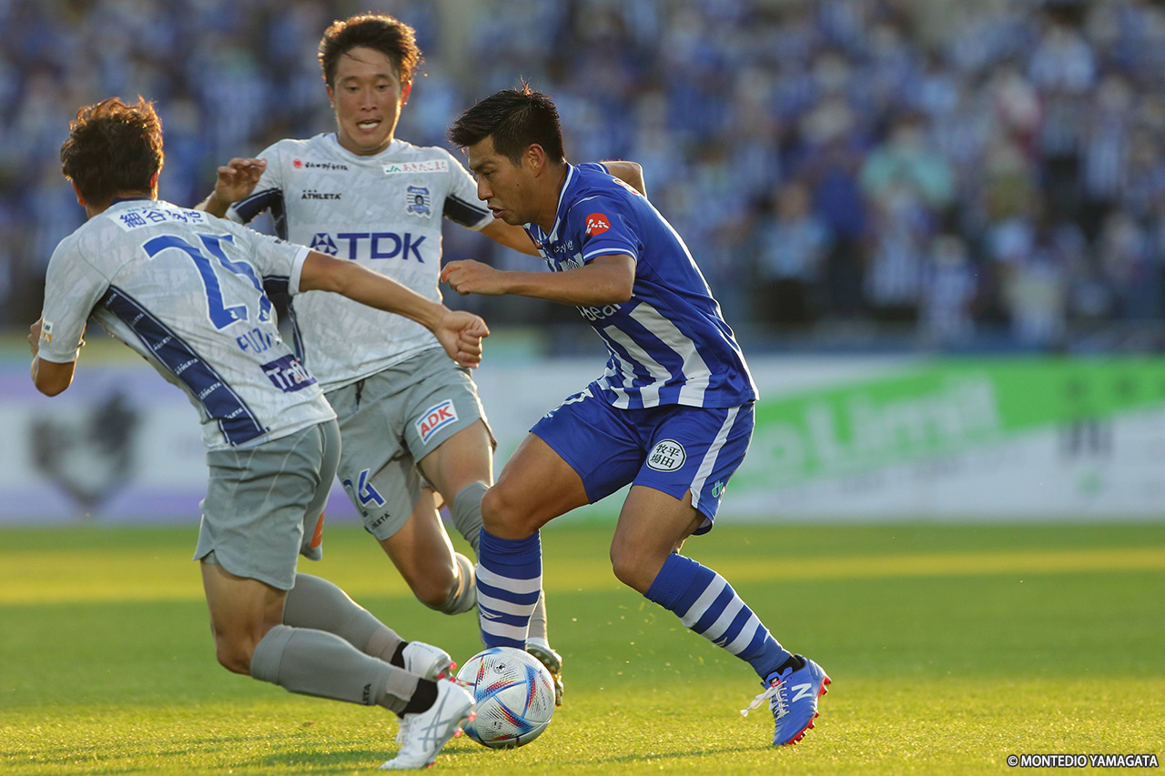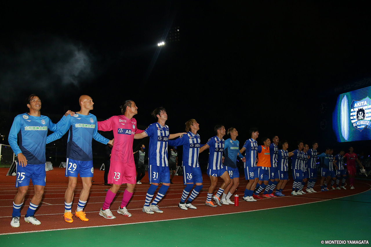 アウェイで行われたブラウブリッツ秋田との一戦は、モンテディオが前半に2点を先行。後半は追加点とはならなかったが、一人少ない秋田にゴールを許さず8試合ぶりの勝利を挙げ、今シーズンの「奥羽本戦」連勝を達成した。