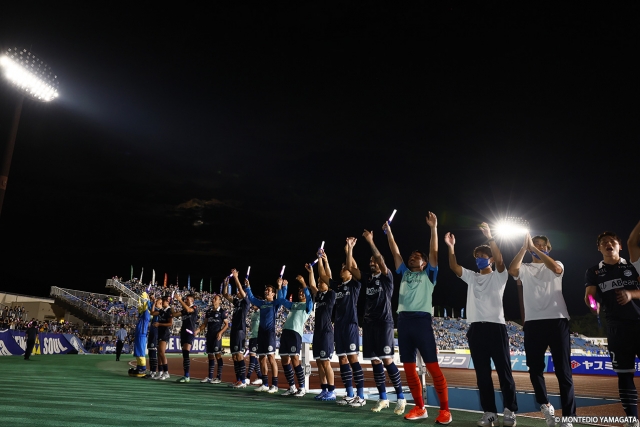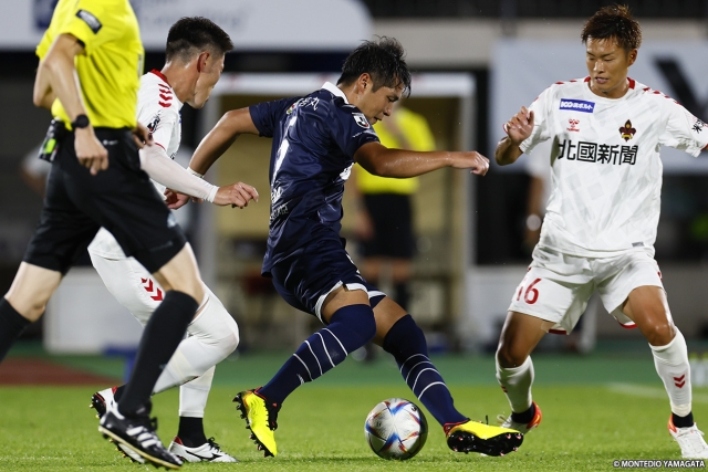 2連勝でホームに戻ったモンテディオ山形は、16位・ツエーゲン金沢と対戦。前半に2得点、後半にも2得点を挙げ、4-1で勝利。連勝を3に伸ばした。