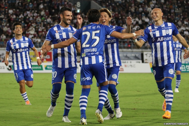 Q1:先制点の直接FKは狙い通りでしたか?そうですね。特に練習はしてないですけど、秋田戦(第27節)のイメージがあったので、思い切って振ったらいいコースに行ってよかったです。