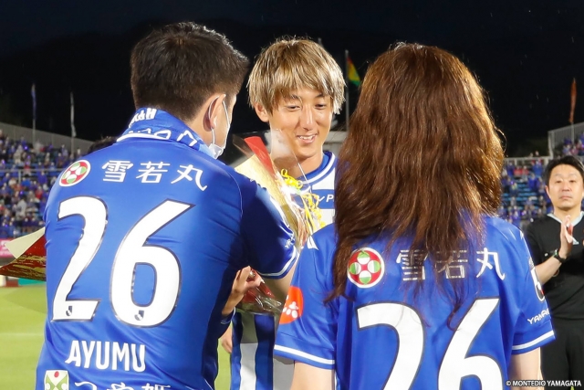 モンテディオは自陣に押し込まれる時間も多かったが、85分、ゴールキックからの攻撃で、セカンドボールを拾った南選手がスルーパスを送ると、ライン付近で浮いていた樺山選手がしっかりコントロールし、左足でゴールを射抜いた。前日に20歳の誕生日を迎えた樺山選手の今シーズン初ゴールでモンテディオが突き放した。