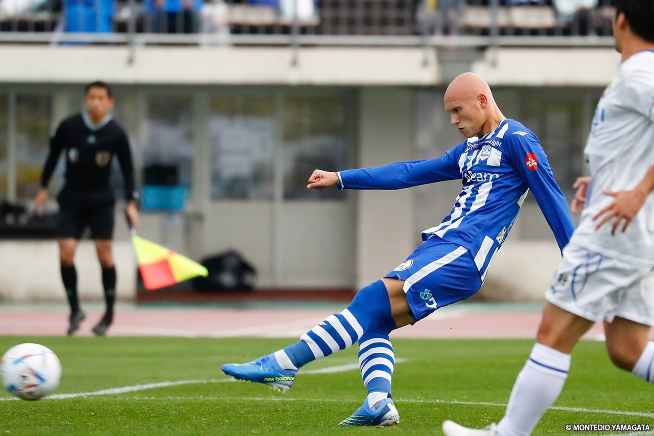 モンテディオの今シーズンの通算戦績は17勝13分12敗、勝点64で6位に入った。プレーオフ1回戦は10月30日(日)、3位・ファジアーノ岡山とアウェイで対戦する。