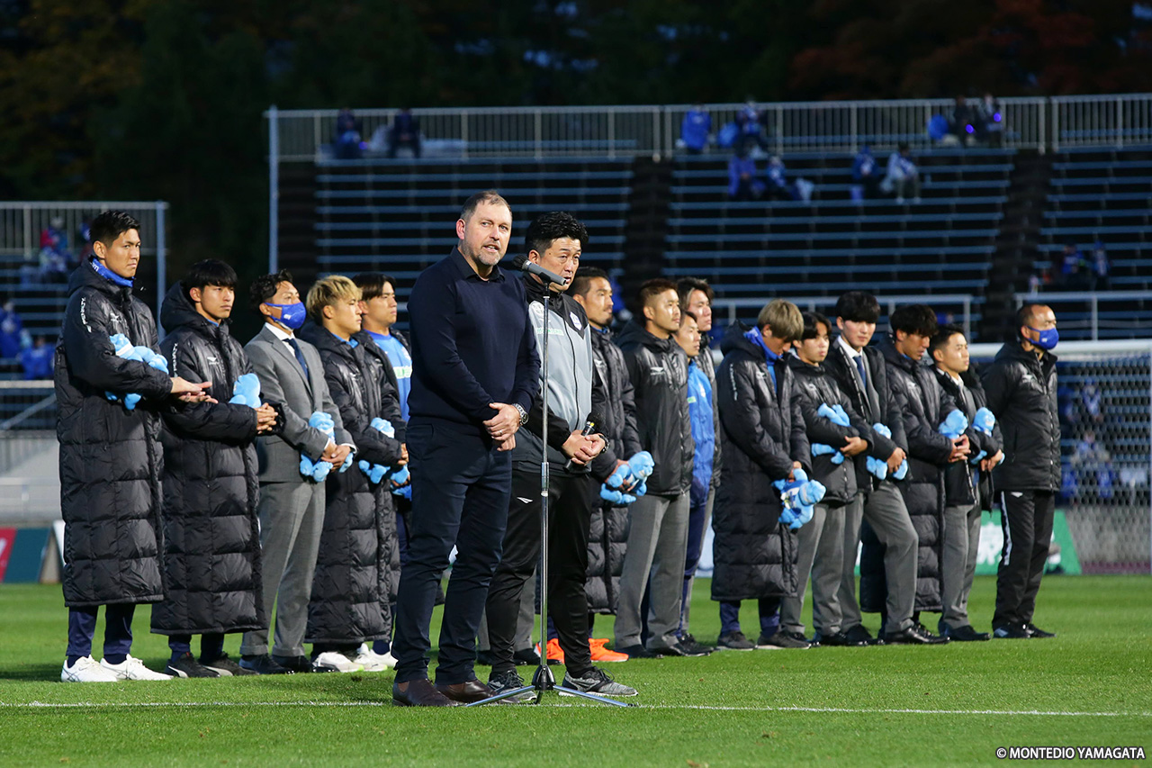 全選手が毎日ハードワークをして互いを高め合おうと日々努力している部分が良く出たと思いますし、自分たちのフットボールをしっかりとやって戦い、サポーターの皆さんのために、そして山形の地域の人々のために、戦った選手たちを誇りに思います。