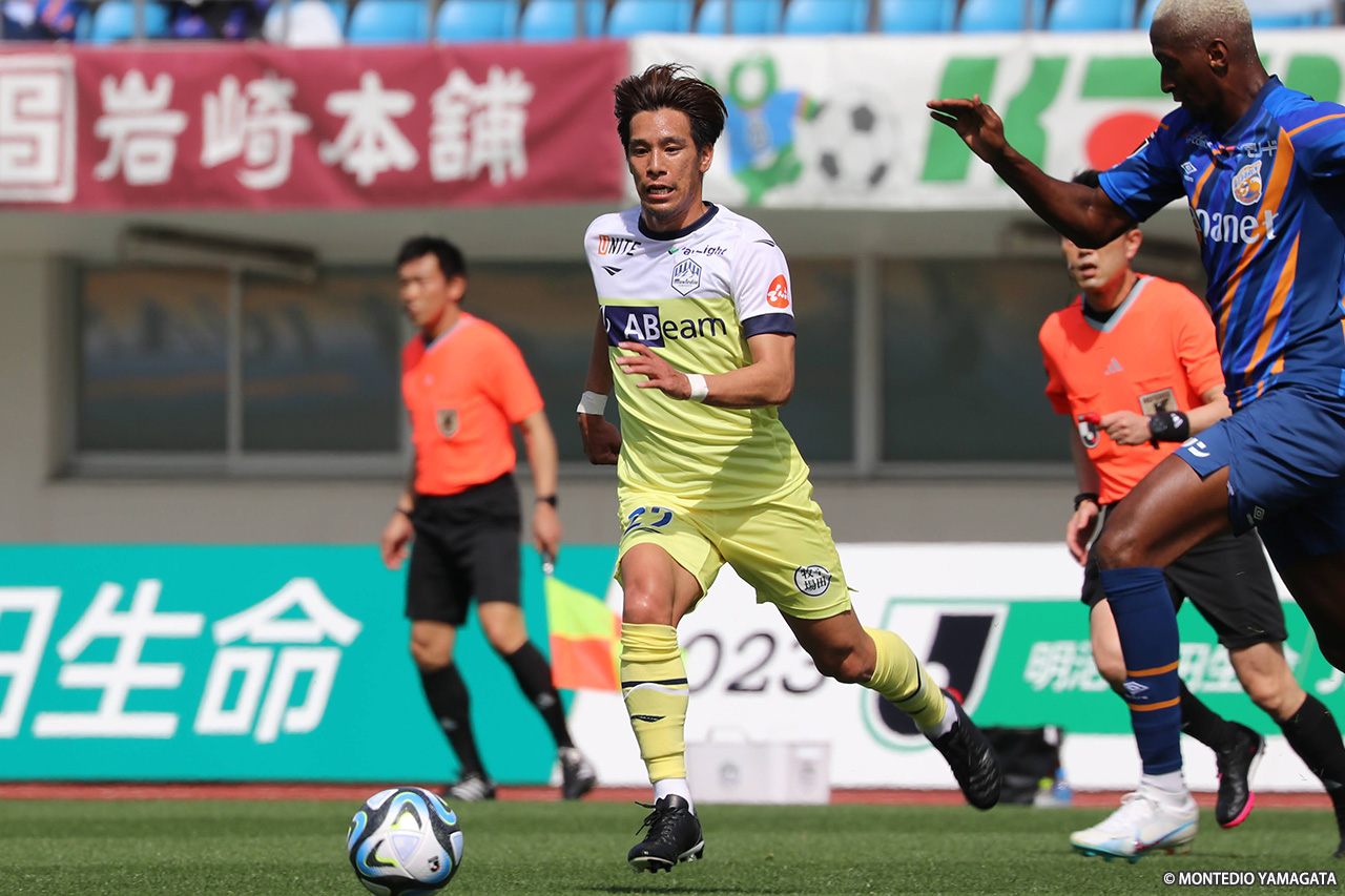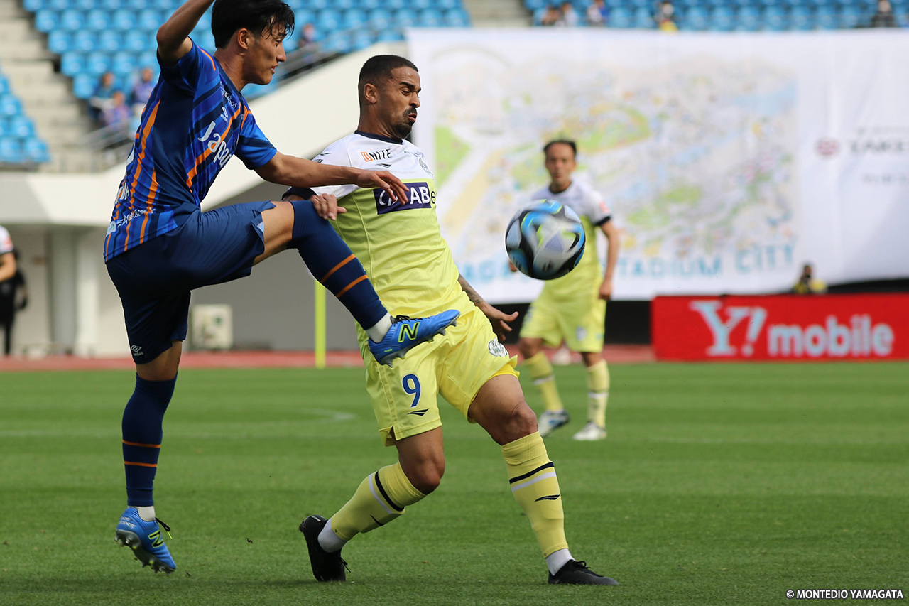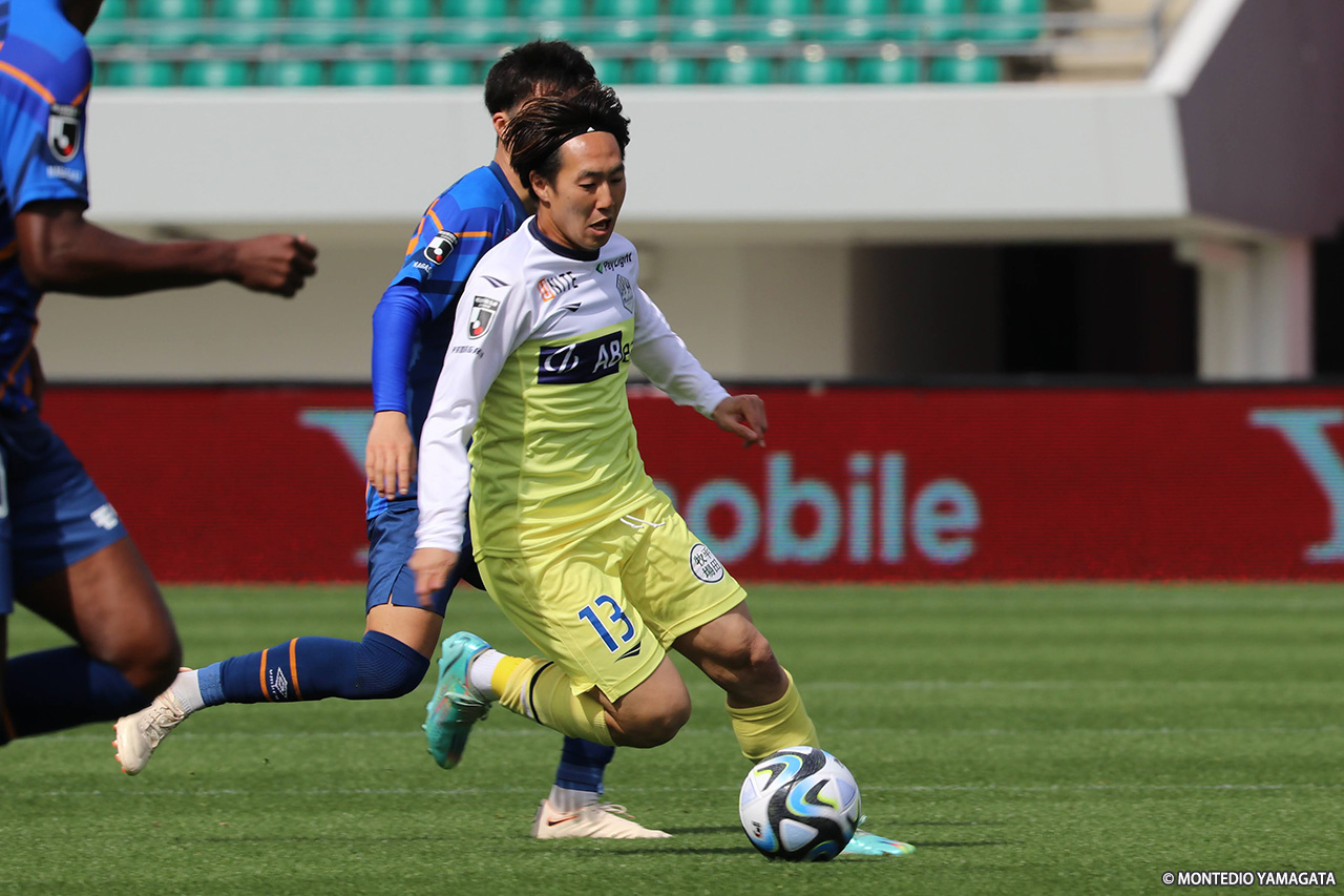 1-0で折り返した後半、モンテディオは追加点を狙って攻め込んだ。54分には藤本のマイナスクロスがズレたが、回り込んでボールに追いついたチアゴがシュート。58分にもカウンターから攻め込み、最後は國分のクロスに藤本が飛び込んだが、いずれもゴールはならなかった。