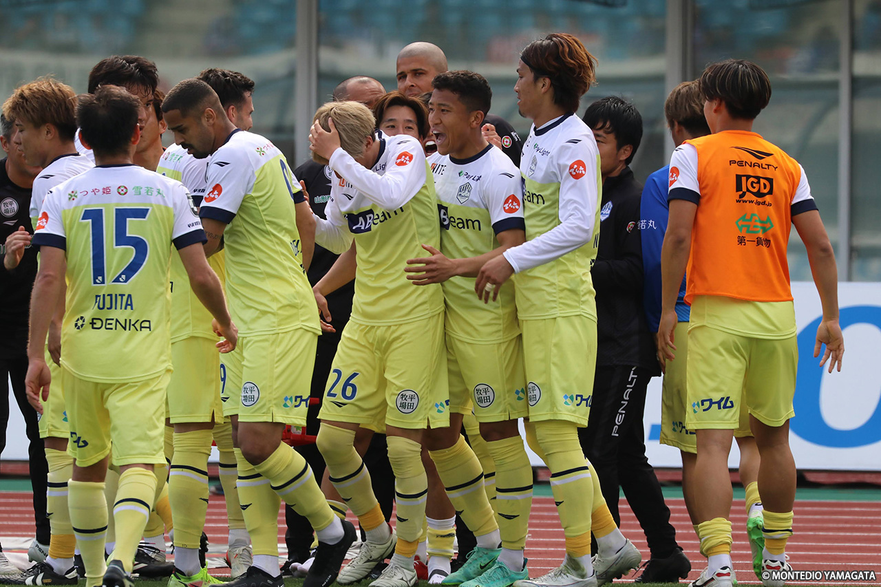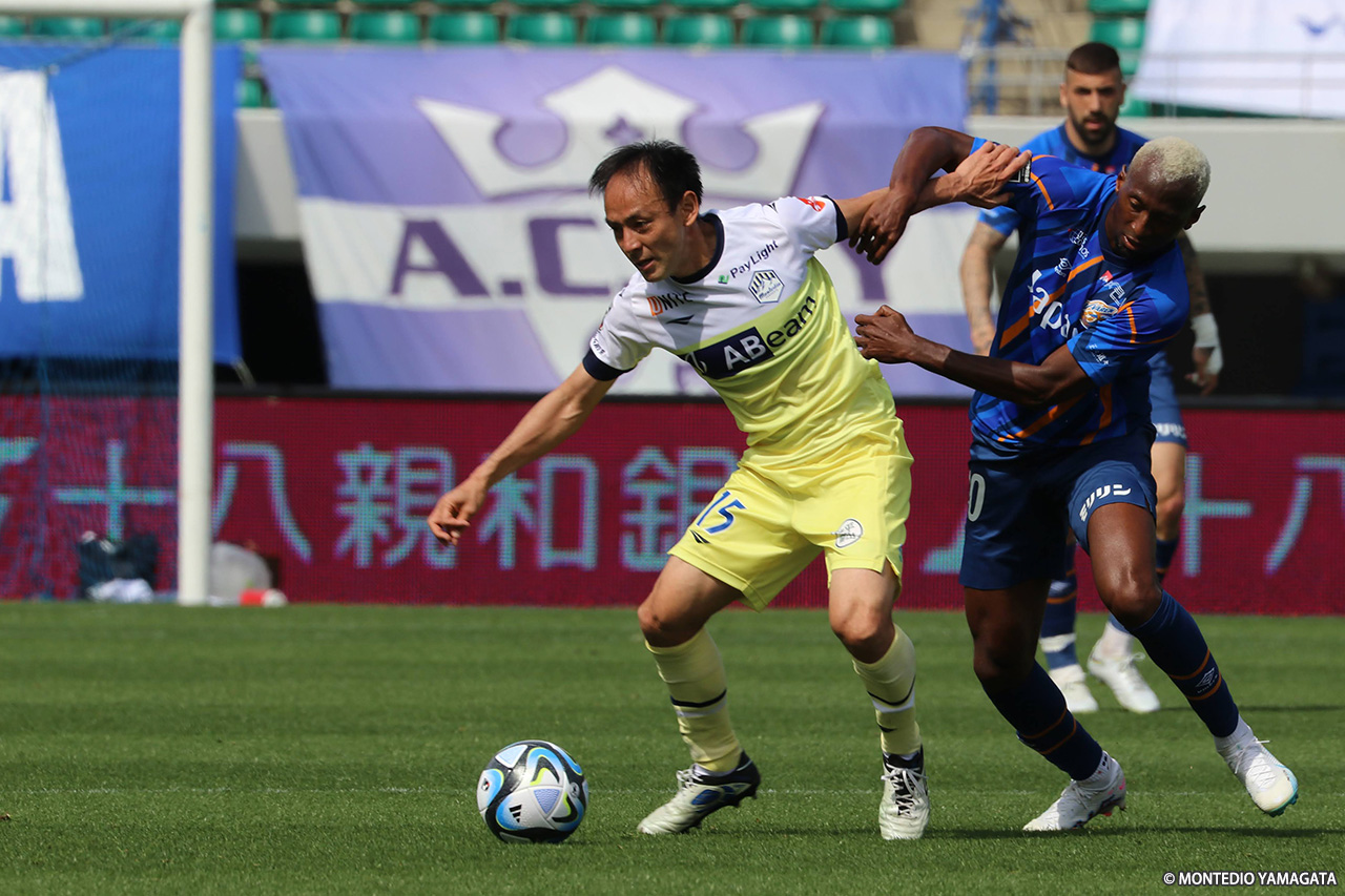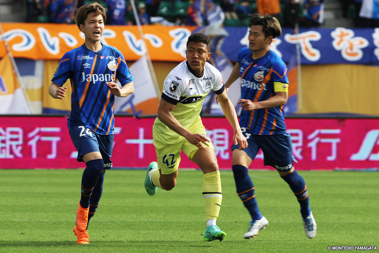 1-0で折り返した後半、モンテディオは追加点を狙って攻め込んだ。54分には藤本のマイナスクロスがズレたが、回り込んでボールに追いついたチアゴがシュート。58分にもカウンターから攻め込み、最後は國分のクロスに藤本が飛び込んだが、いずれもゴールはならなかった。
