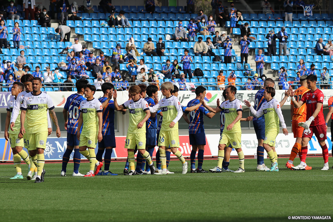 土壇場で2-3と逆転を許したあと、1点を返す時間は残されていなかった。そのまま試合終了。モンテディオは4連敗となり、通算戦績は2勝4敗となった。