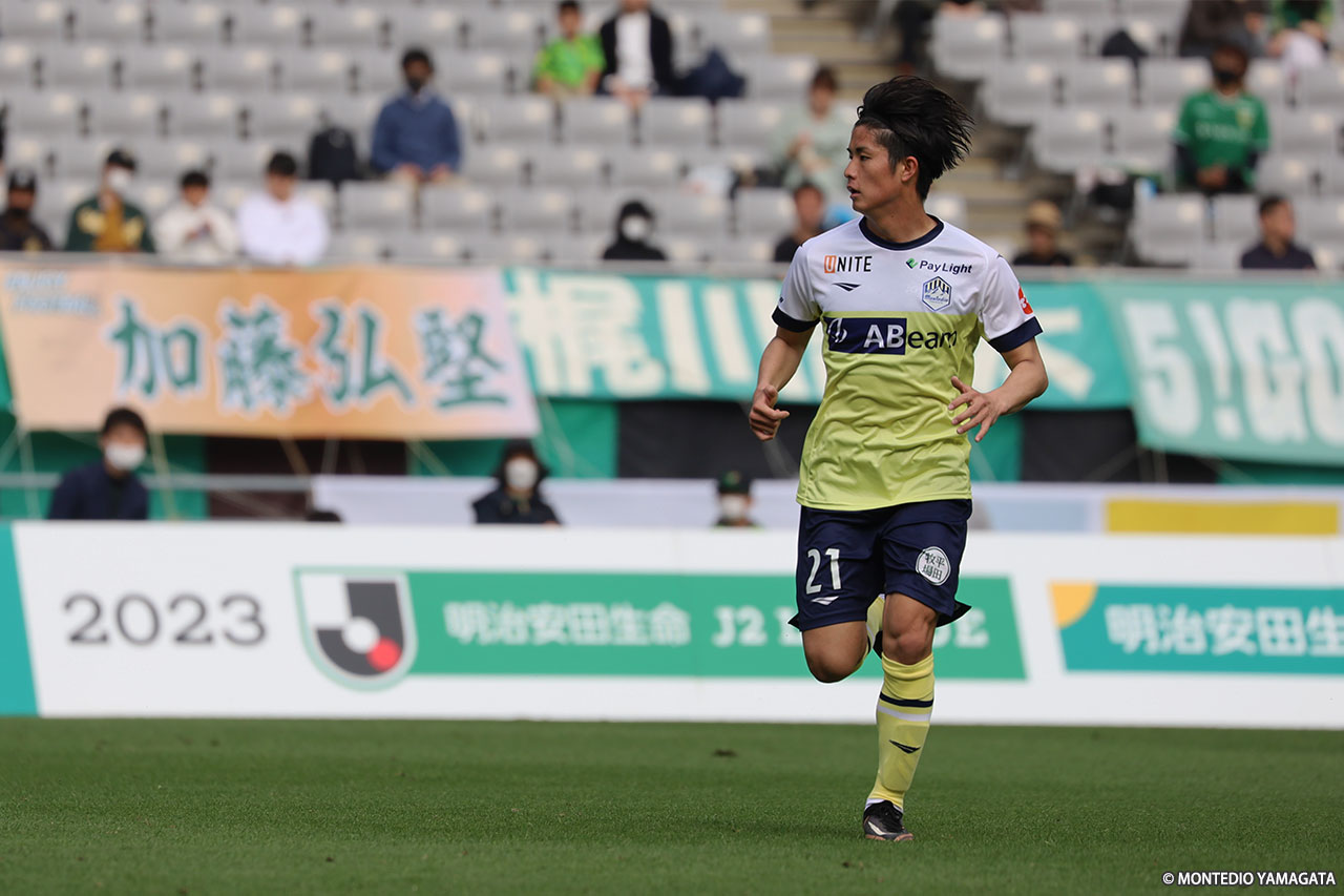 A:そうですね、間違いないですね。Jリーグデビューというのは一生に一度しかないので。それは昨日からずーっと思っていたことですし、モンテディオでJリーグデビューできてすごく嬉しいです。