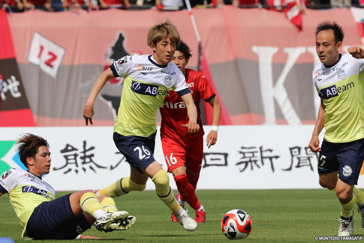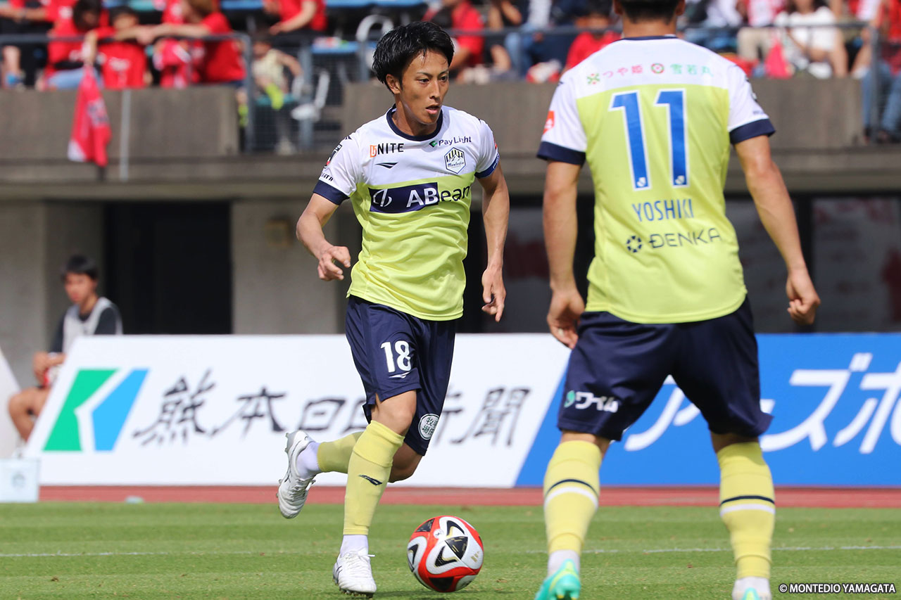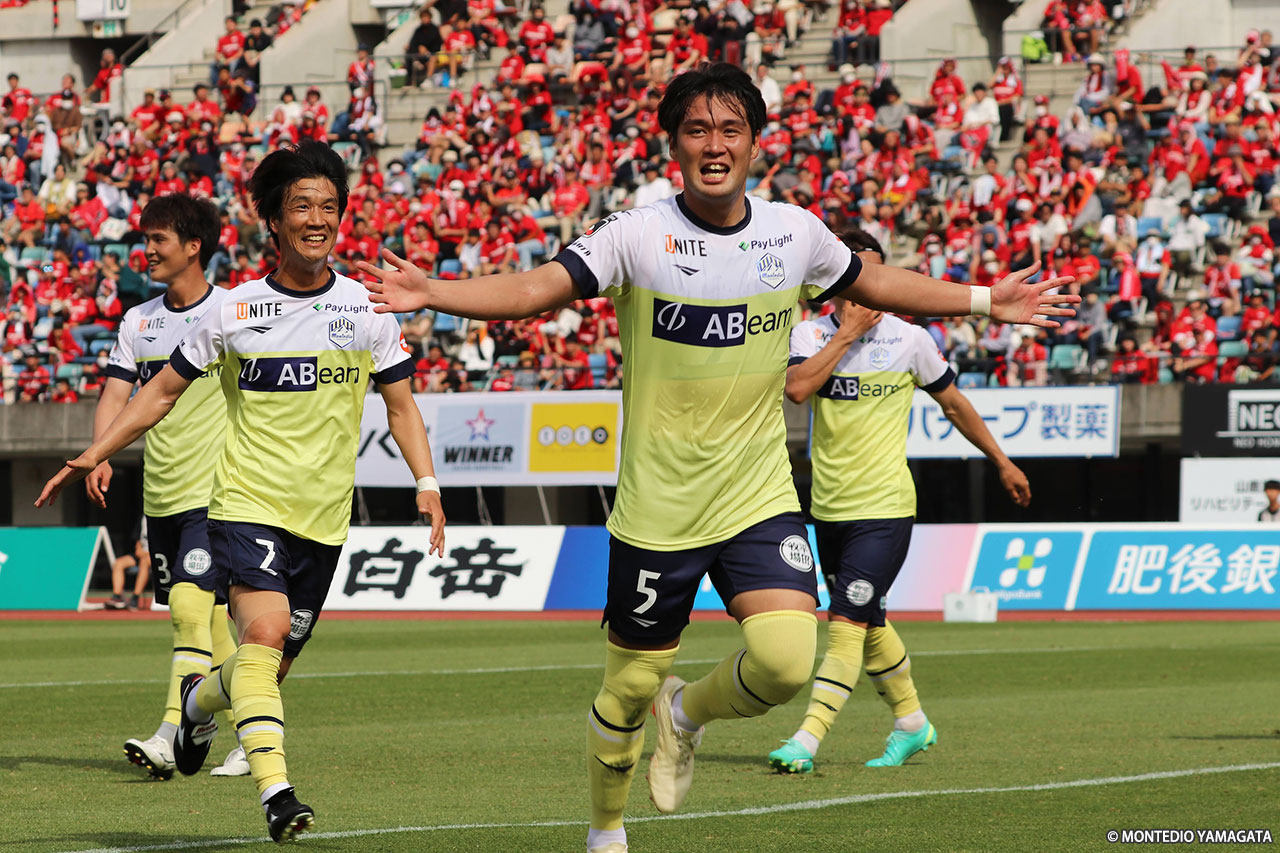 ホーム連戦で2連勝し、ロアッソ熊本とのアウェイゲームに乗り込んだモンテディオ山形は、我慢の前半を0-0で凌ぎ、後半に3得点。さらに今季2度目のクリーンシートで終え、連勝を3に伸ばした。