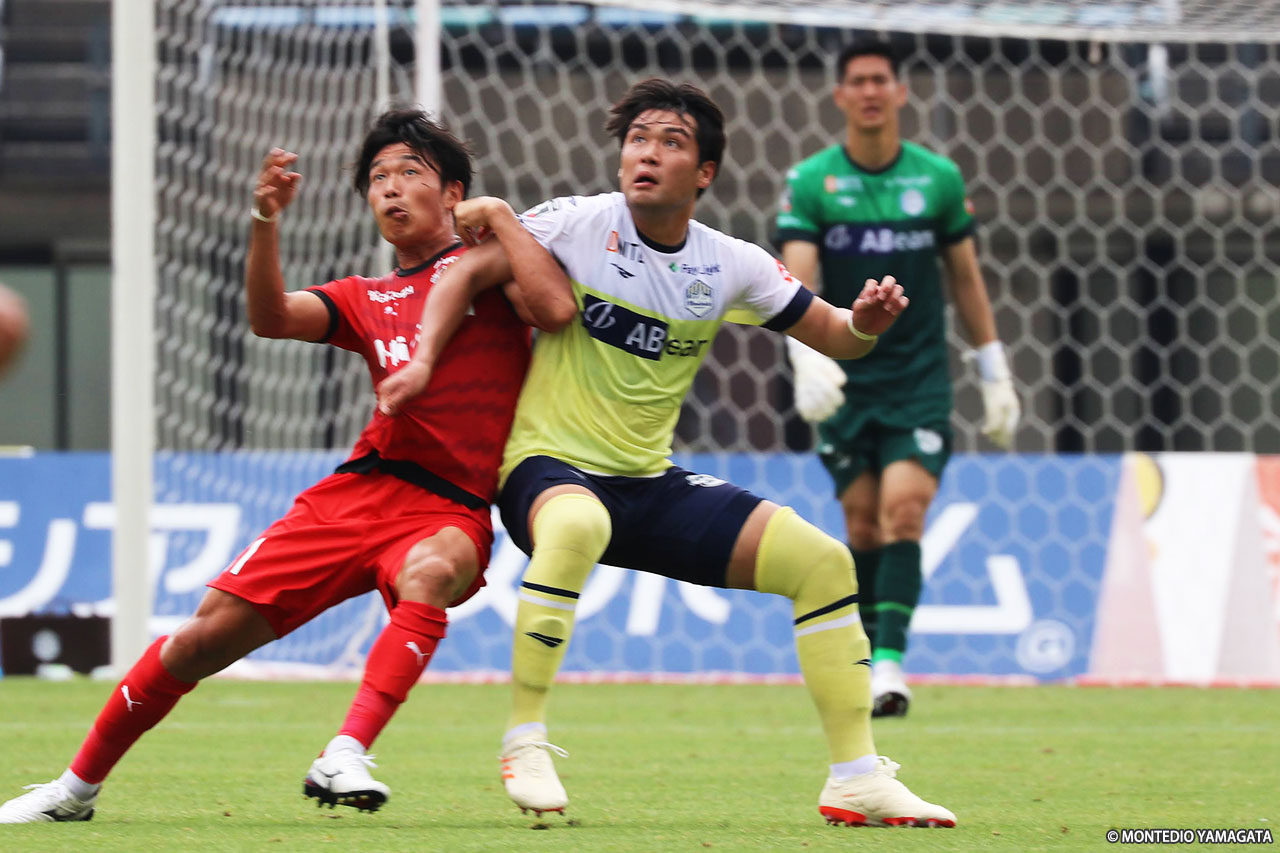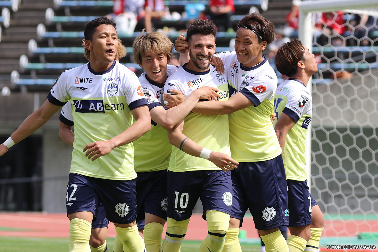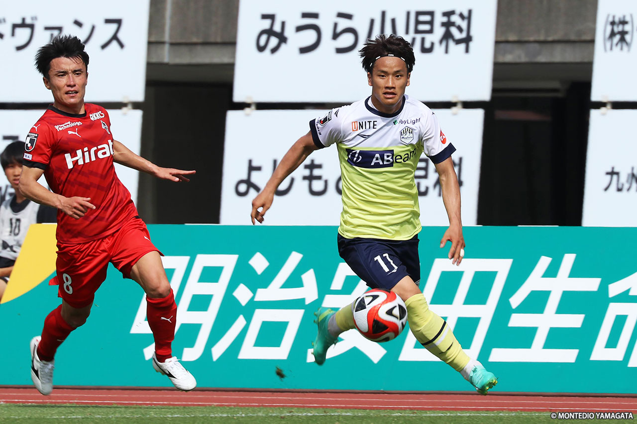 ホーム連戦で2連勝し、ロアッソ熊本とのアウェイゲームに乗り込んだモンテディオ山形は、我慢の前半を0-0で凌ぎ、後半に3得点。さらに今季2度目のクリーンシートで終え、連勝を3に伸ばした。