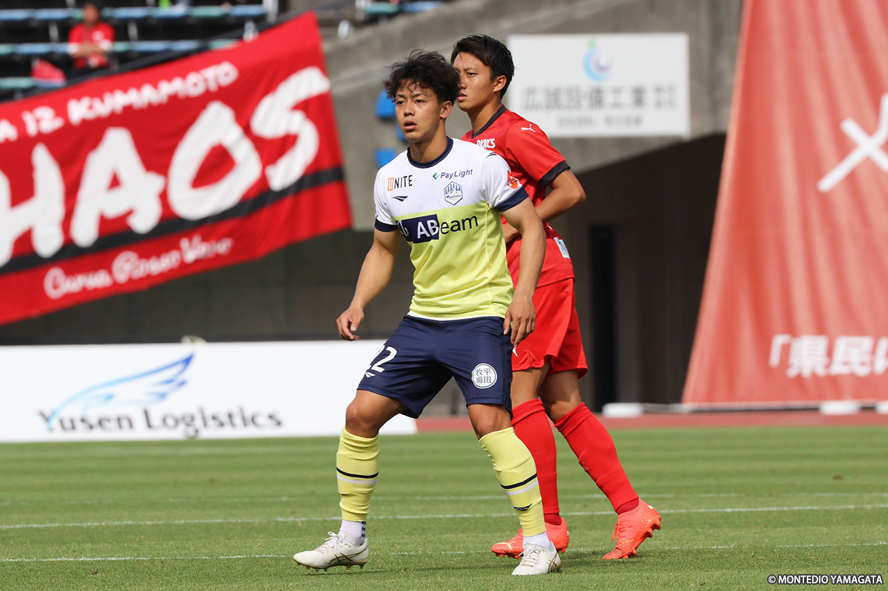 その後もボールを保持し攻め込む熊本に対し、モンテディオはややブロックを下げた状態で迎え撃ったが、22分には大本のクロスから粟飯原にフリーで入り込まれシュートを打たれるシーンや、その直後にも島村拓弥にフリーでミドルシュートを打たれるシーンなどもあったが、いずれも枠外だった。