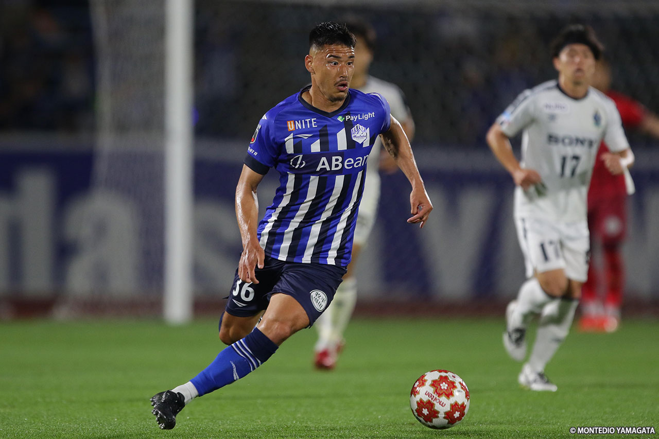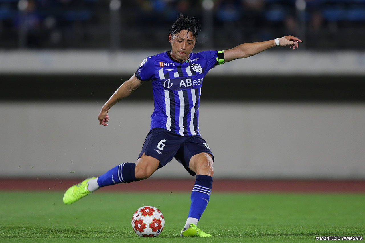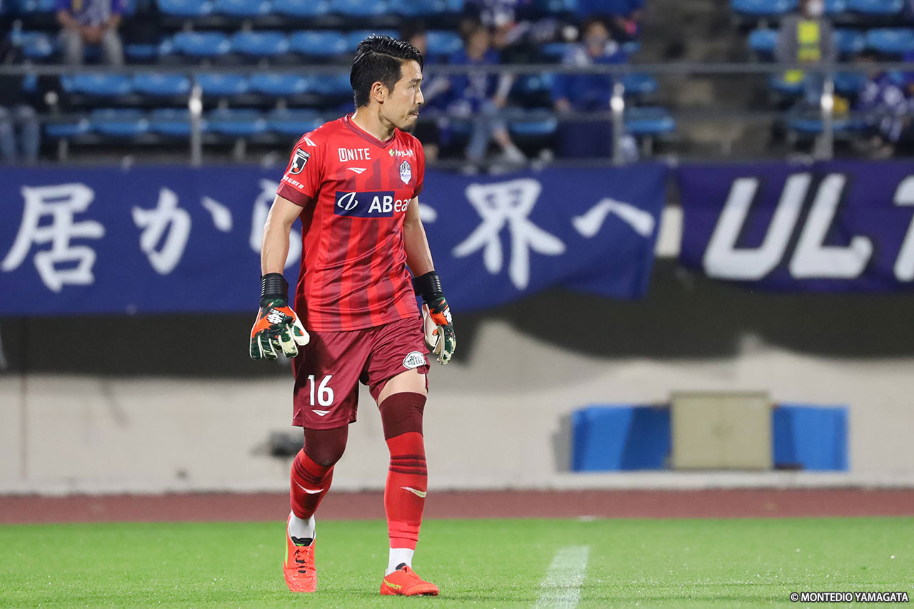 モンテディオは33分にも、くさびを受けた高橋が落とし、山田拓巳が入れたアーリークロスで逆サイドの河合が飛び出したが、ここはオフサイドとなった。すると、ここでモンテディオにアクシデント発生。高橋が足を痛め、42分に荒川永遠と交代となった。