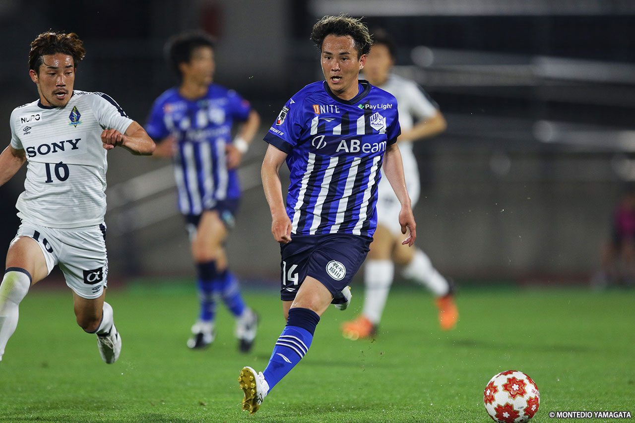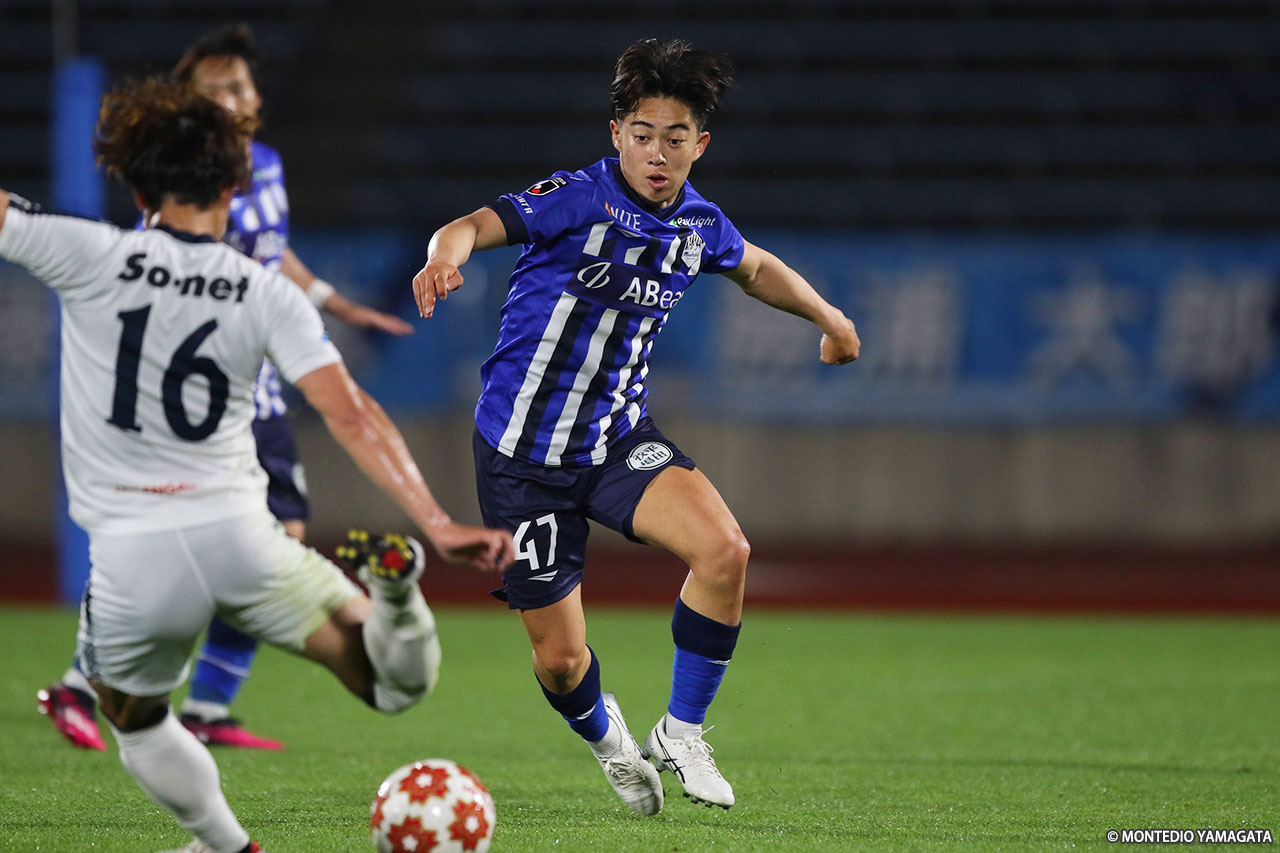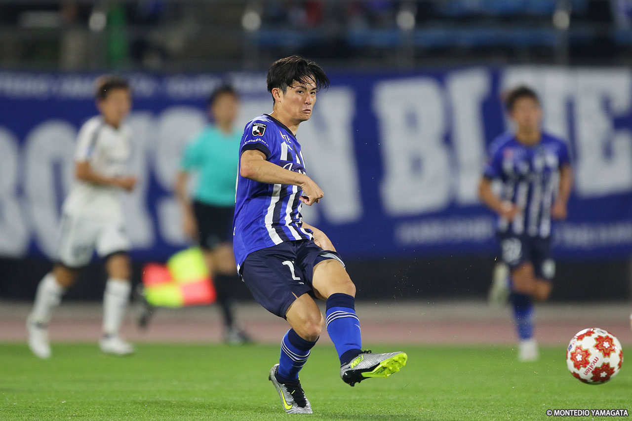1-0で折り返した後半、モンテディオは熊本から野田裕喜にスイッチし、前半はセンターバック左でプレーしていた西村慧祐は、センターバック右に移った。