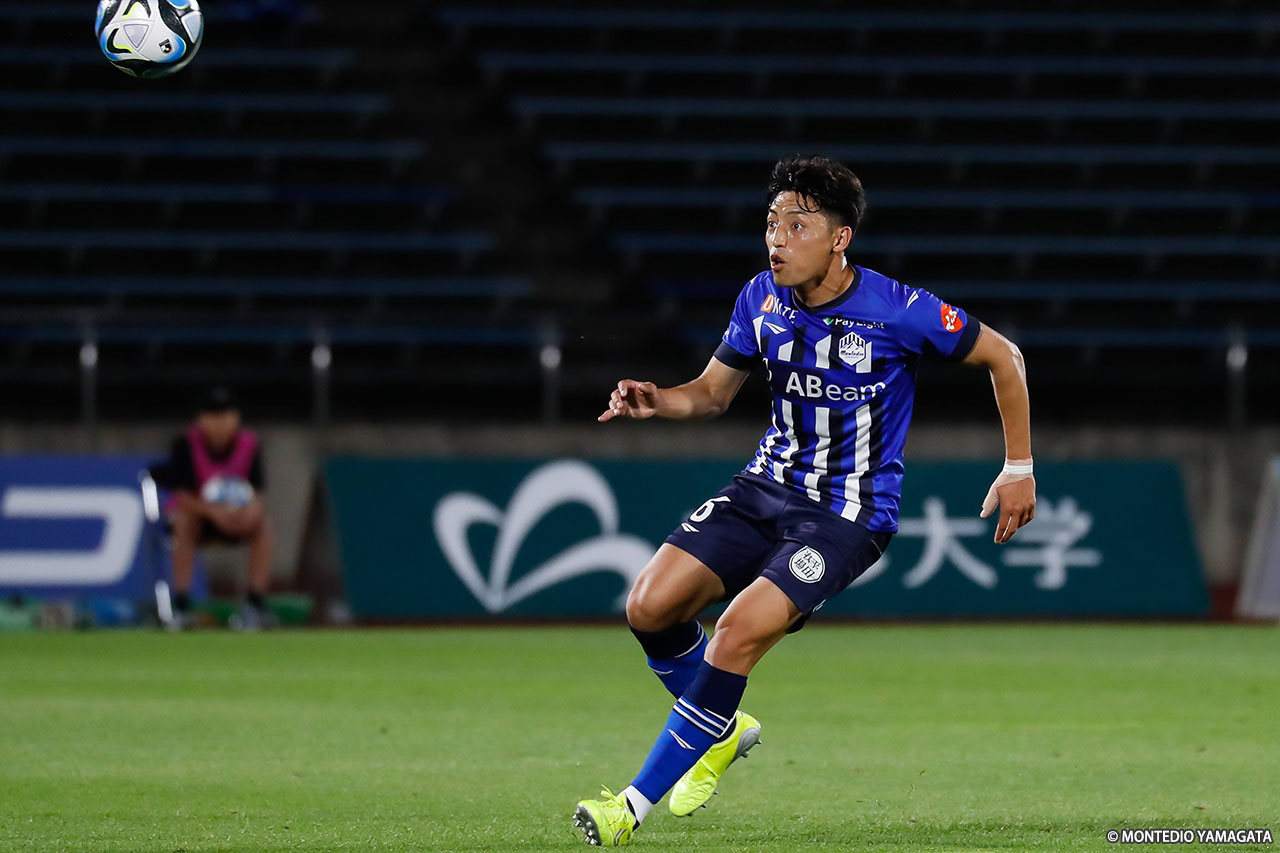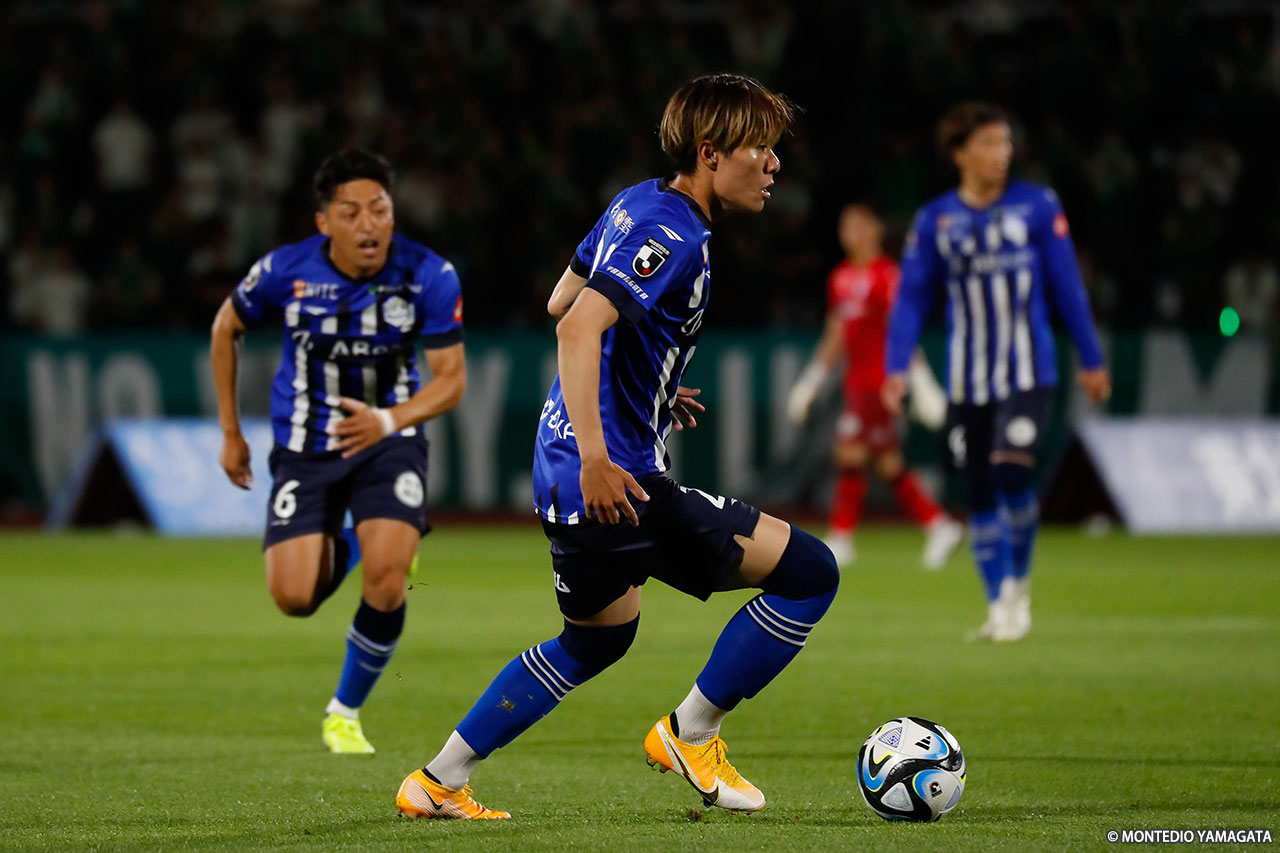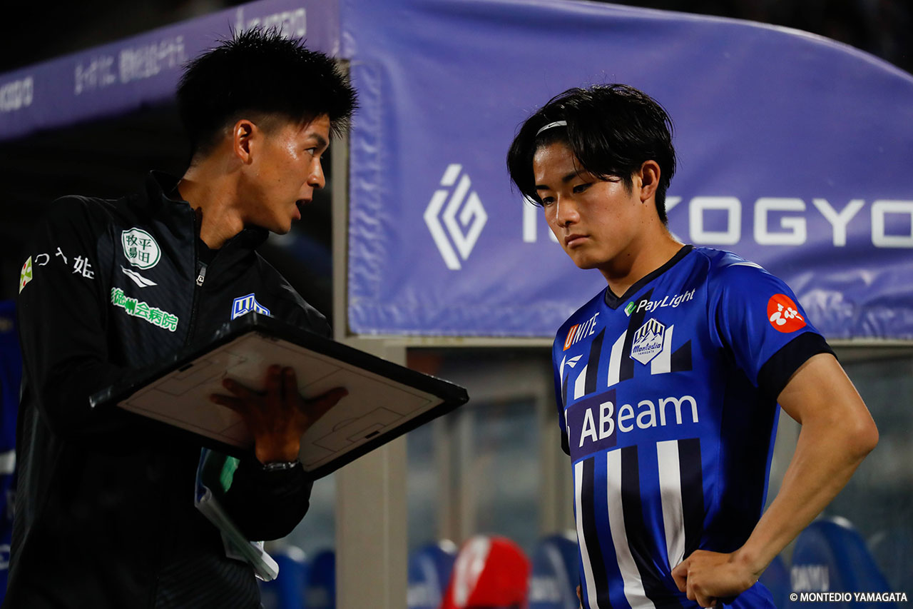 モンテディオは攻撃で思いきりのいいプレーが少なく、33分には藤田がシュートを狙い、38分には中央から國分がシュートを放つが、いずれも枠内に飛ばすことはできず、40分には野田裕喜から國分へフィードが通ったかと思われたが、オフサイドだった。