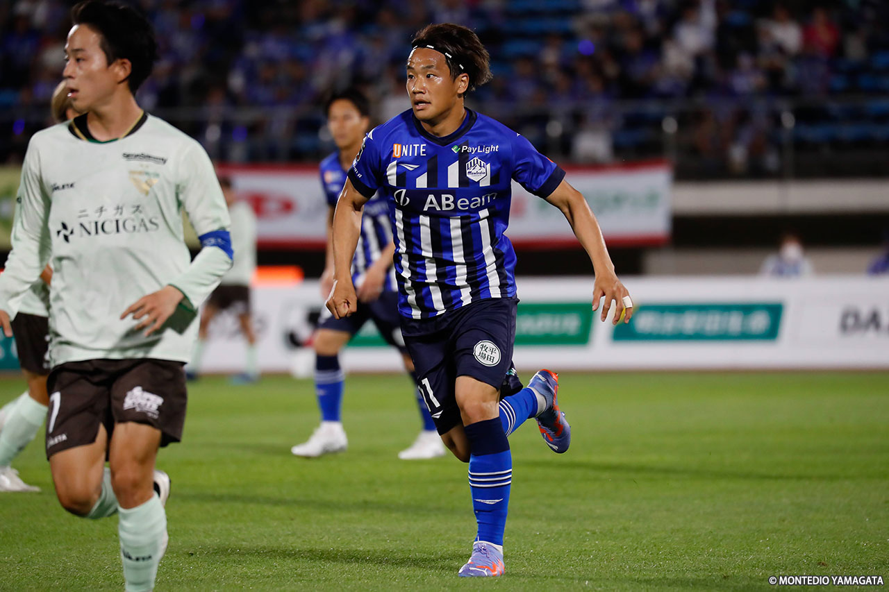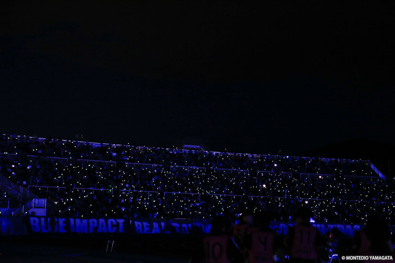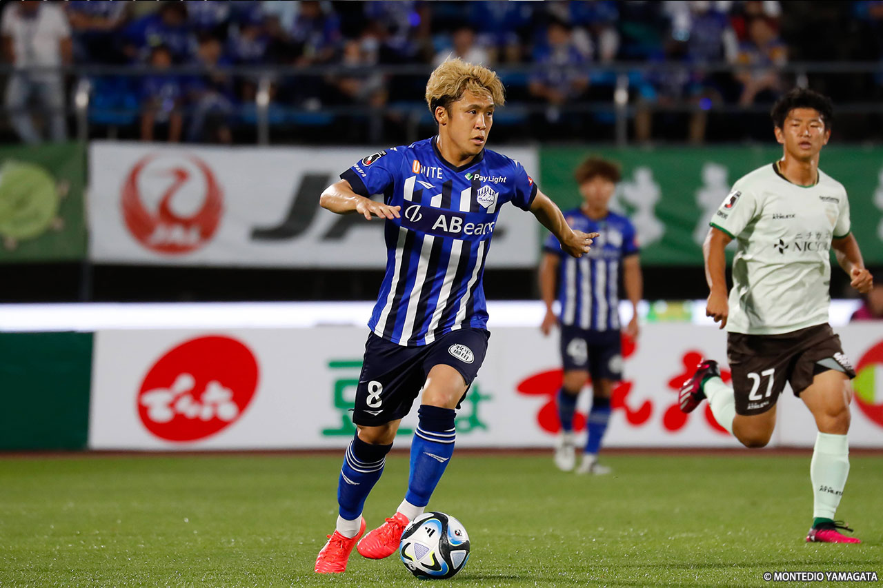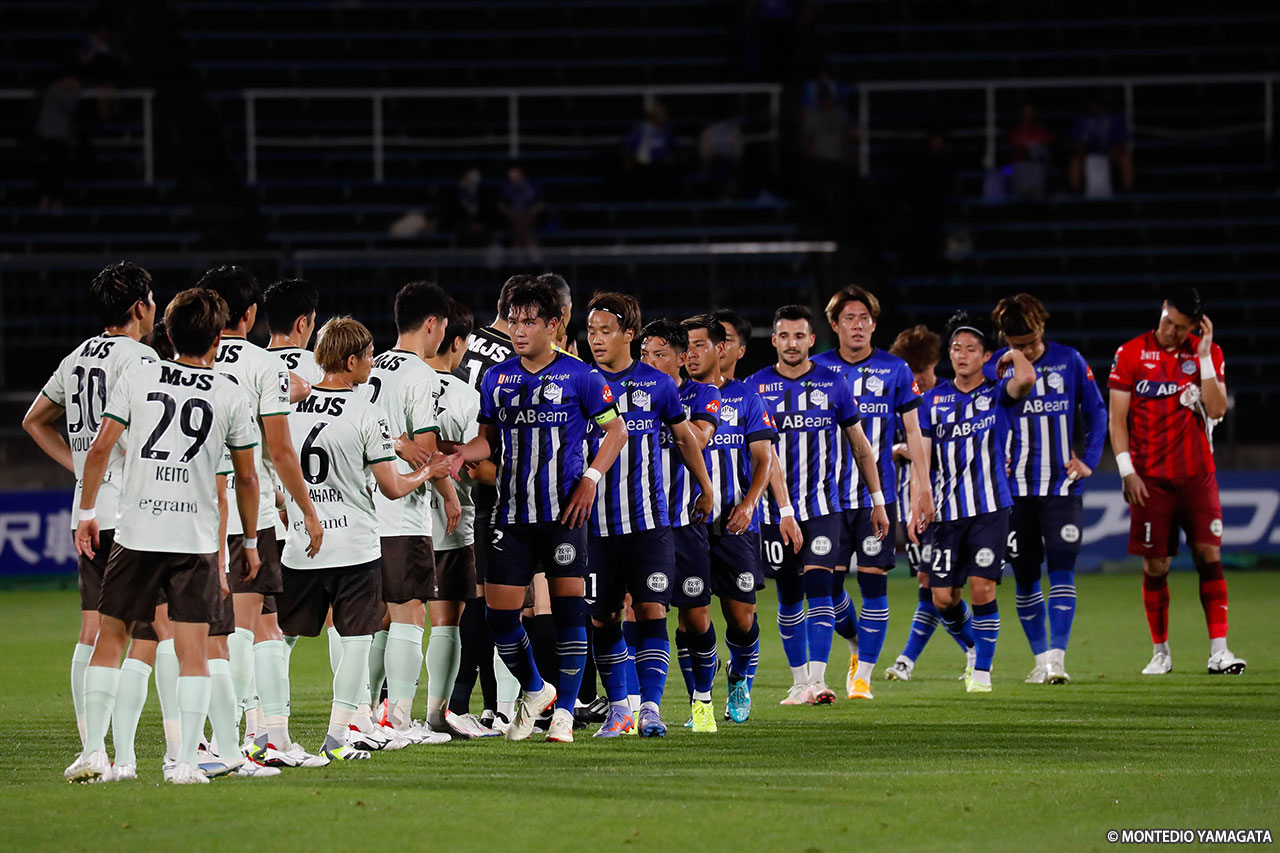 モンテディオは攻撃で思いきりのいいプレーが少なく、33分には藤田がシュートを狙い、38分には中央から國分がシュートを放つが、いずれも枠内に飛ばすことはできず、40分には野田裕喜から國分へフィードが通ったかと思われたが、オフサイドだった。