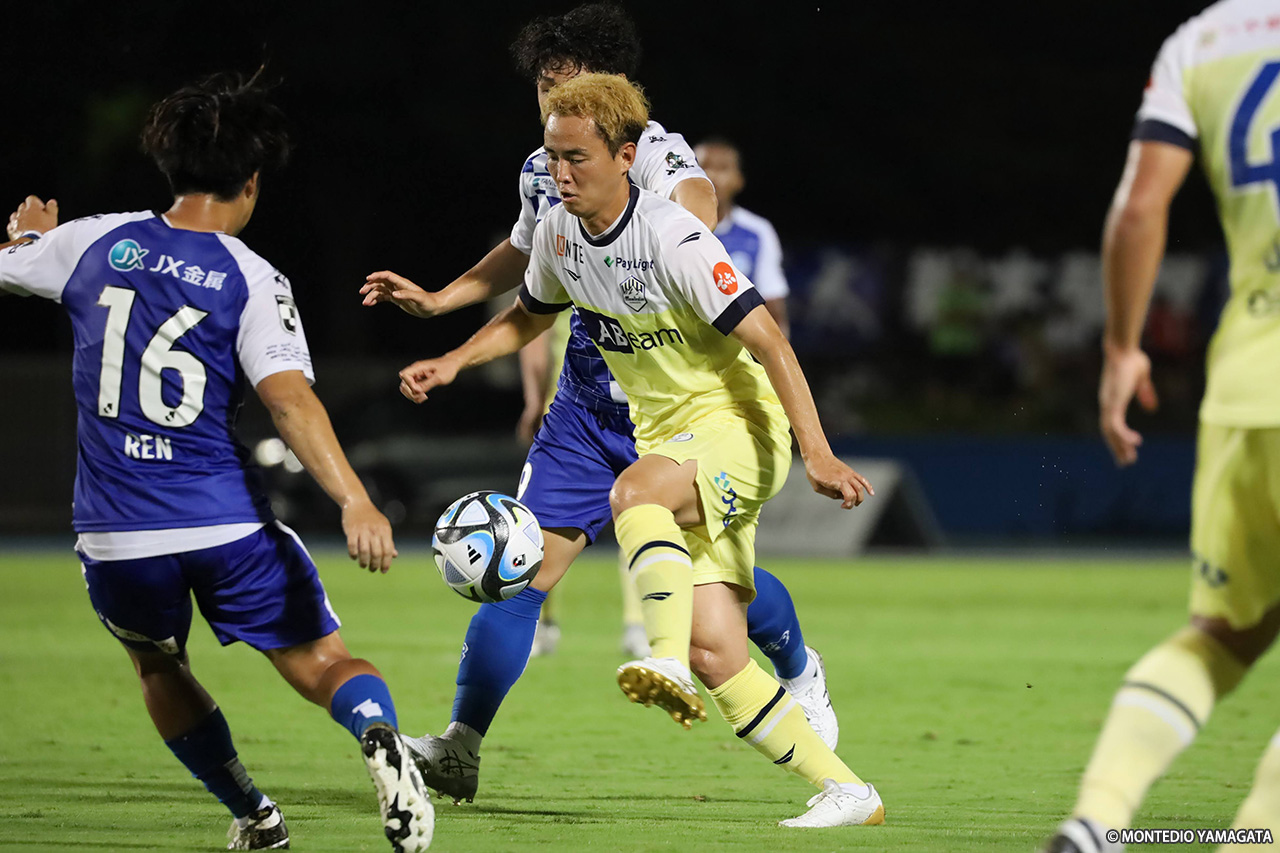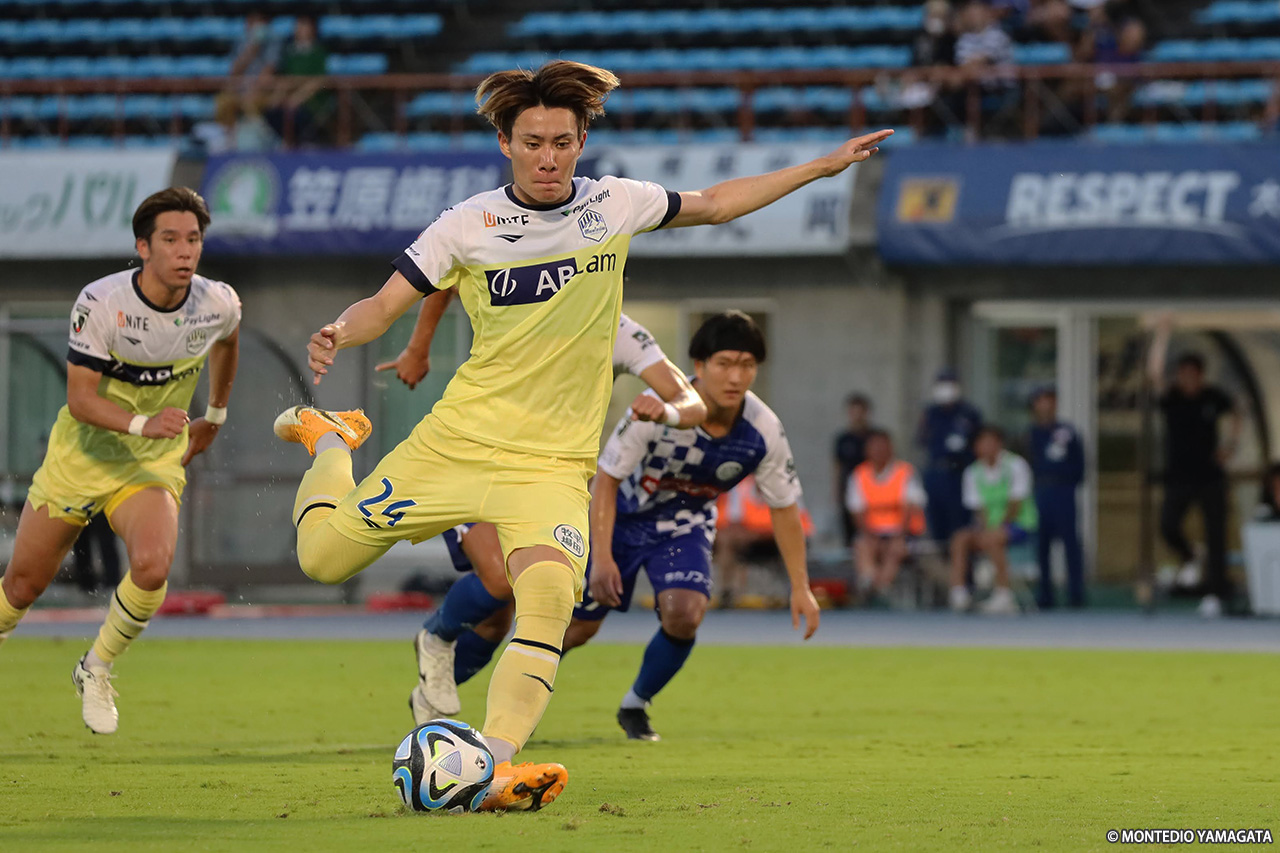 リーグ戦2連敗、天皇杯3回戦でも敗れたモンテディオは、5連戦の最後にアウェイで水戸ホーリーホックと対戦。全体に水戸のハイプレッシャーに圧される時間が多く、1-1で迎えた後半に2点を失って1-3で敗れ、リーグ戦3連敗となった。